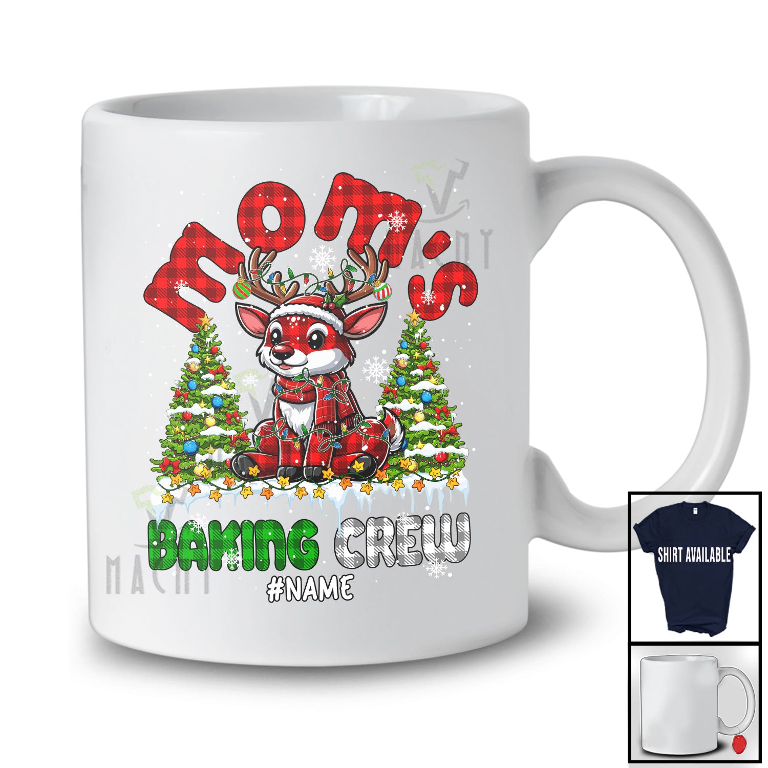 Personalized Mom's Baking Crew; Wonderful Christmas Red Plaid Reindeer; Custom Name Family T-Shirt