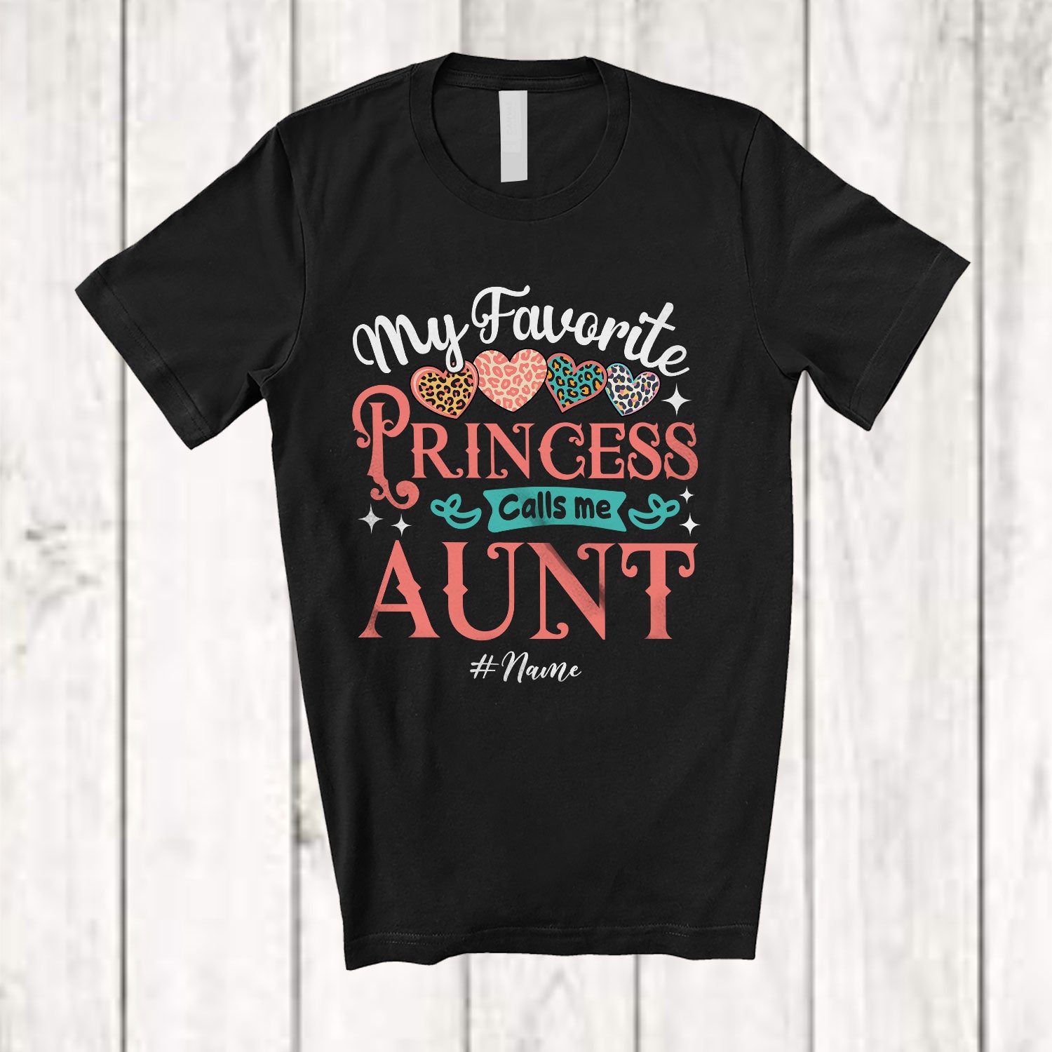 Personalized My Favorite Princess Call Me Aunt; Lovely Mother's Day Custom Name Leopard Heart T-Shirt. This cotton t-shirt is a durable staple product with a classic fit. One of the most popular items, it has a relaxed style made for everyday and casual wear.