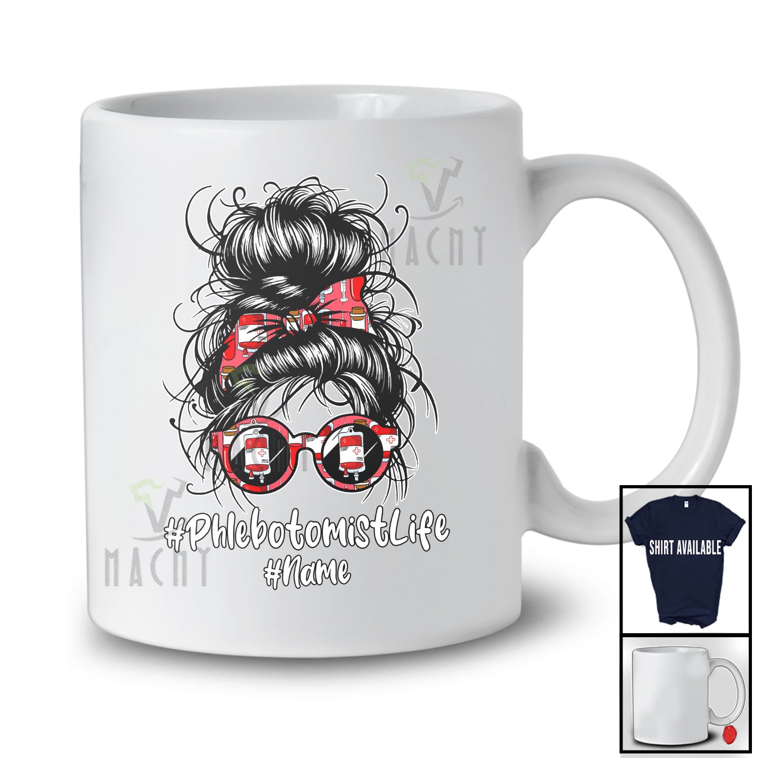 • Personalized Phlebotomistlife; Proud Mother's Day Custom Name Phlebotomist Messy Bun Hair T-Shirt. This cotton t-shirt is a durable staple product with a classic fit. One of the most popular items, it has a relaxed style made for everyday and casual wear.