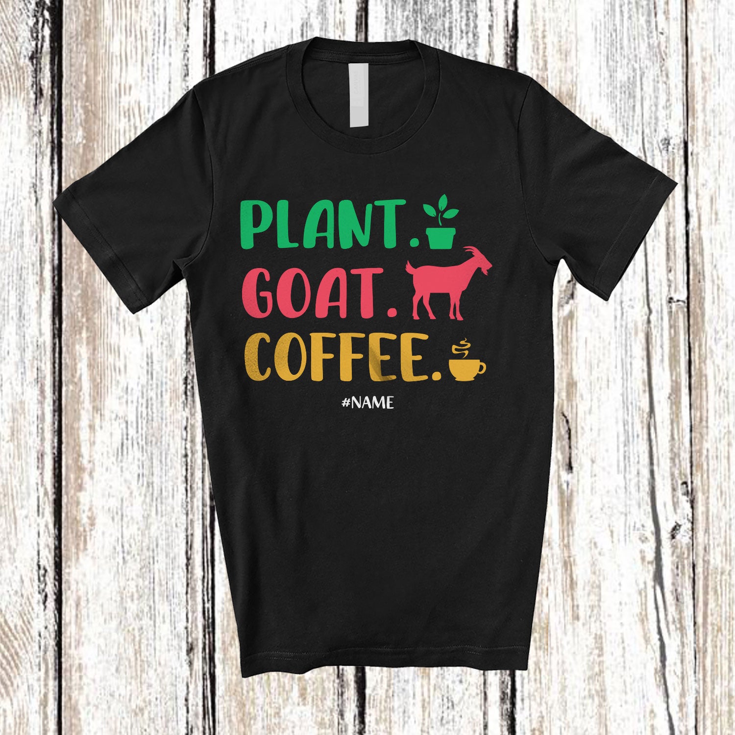 • Personalized Plant Goat Coffee; Proud Mother's Day Father's Day Gardener Farmer; Family T-Shirt. This cotton t-shirt is a durable staple product with a classic fit. One of the most popular items, it has a relaxed style made for everyday and casual wear.