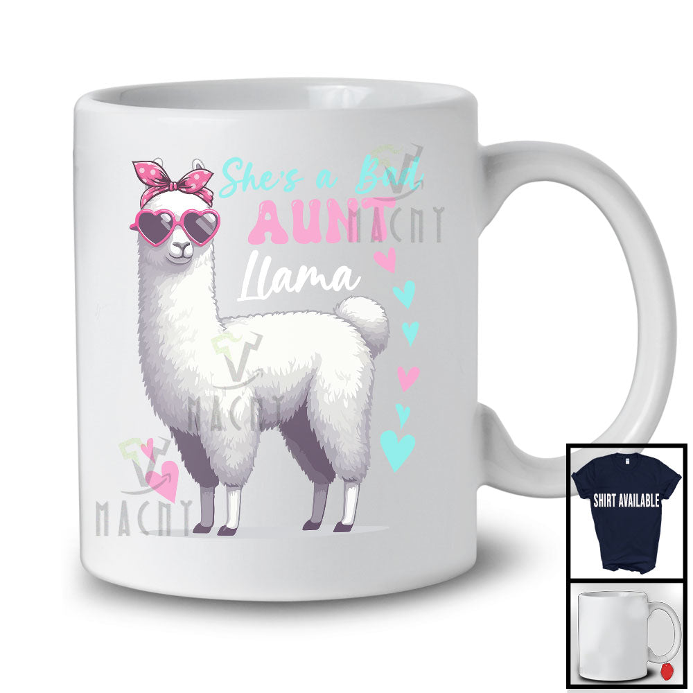 This She's A Bad Aunt Llama; Humorous Mother's Day Heart Sunglasses Llama; Family Group T-Shirt is great idea gift for your family, friends in this birthday, christmas, mother's day, father's day, patrick's day or any holiday.