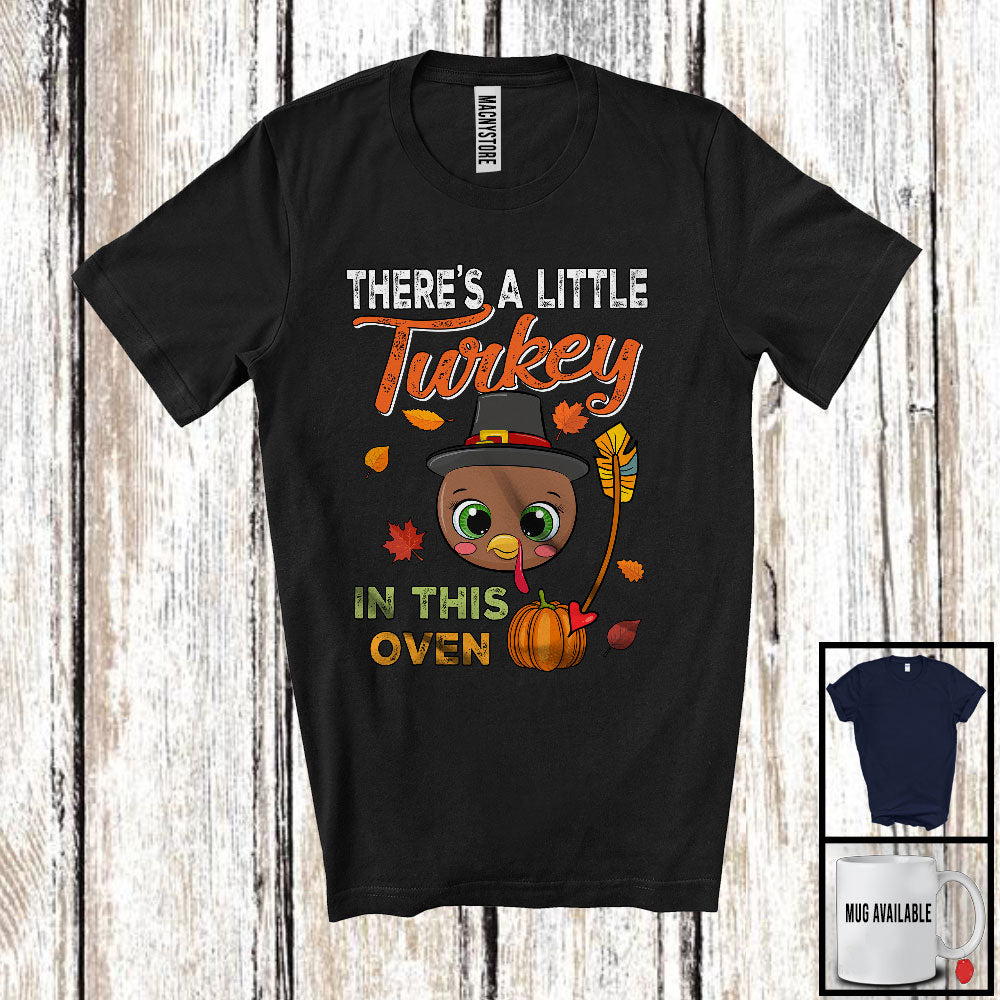 There's A Little Turkey In This Oven; Amazing Thanksgiving Pregnancy Turkey Face; Mom Family T-Shirt