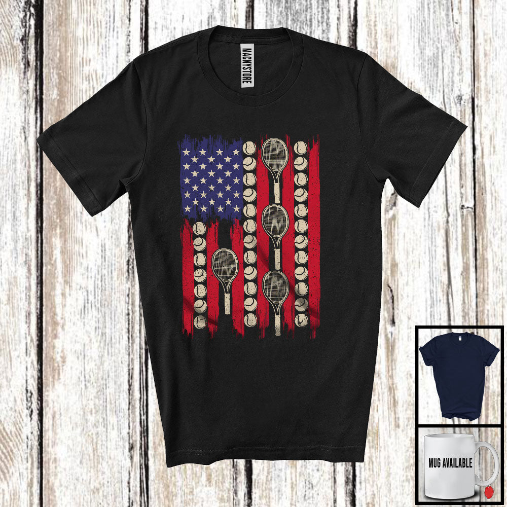 American Flag Tennis, Proud 4th Of July USA Flag Sport Player Playing Team, Patriotic Group T-Shirt