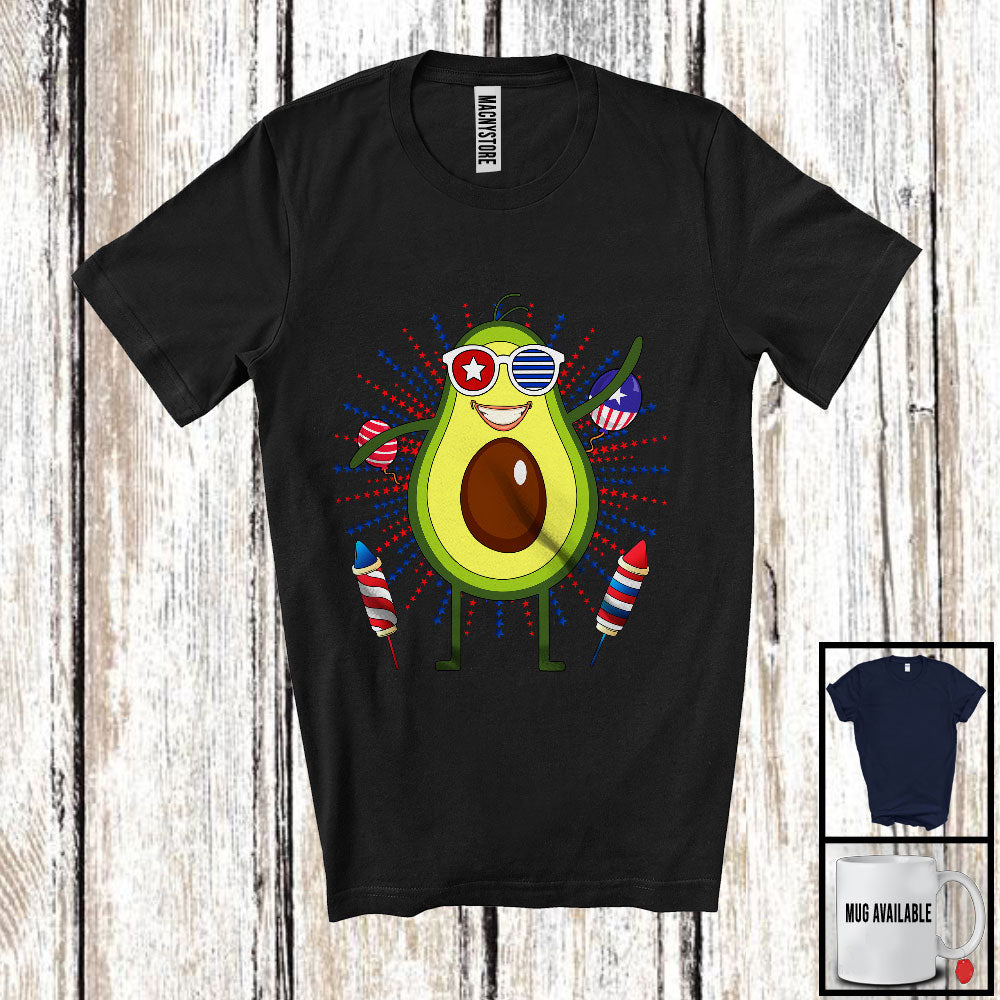 Avocado Wearing American Flag Sunglasses, Humorous 4th Of July Vegan, Fireworks Patriotic T-Shirt