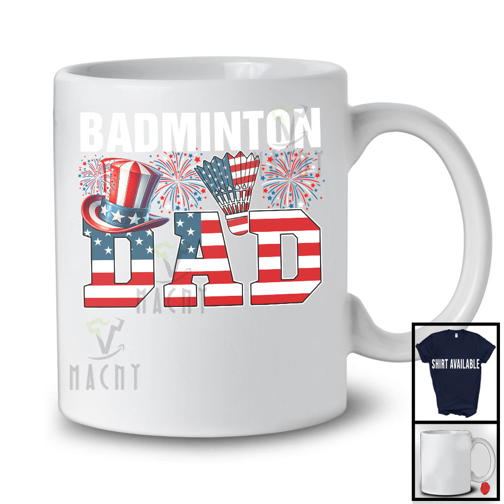 Badminton Dad, Amazing Father's Day 4th Of July American Flag, Sport Player Team Patriotic T-Shirt
