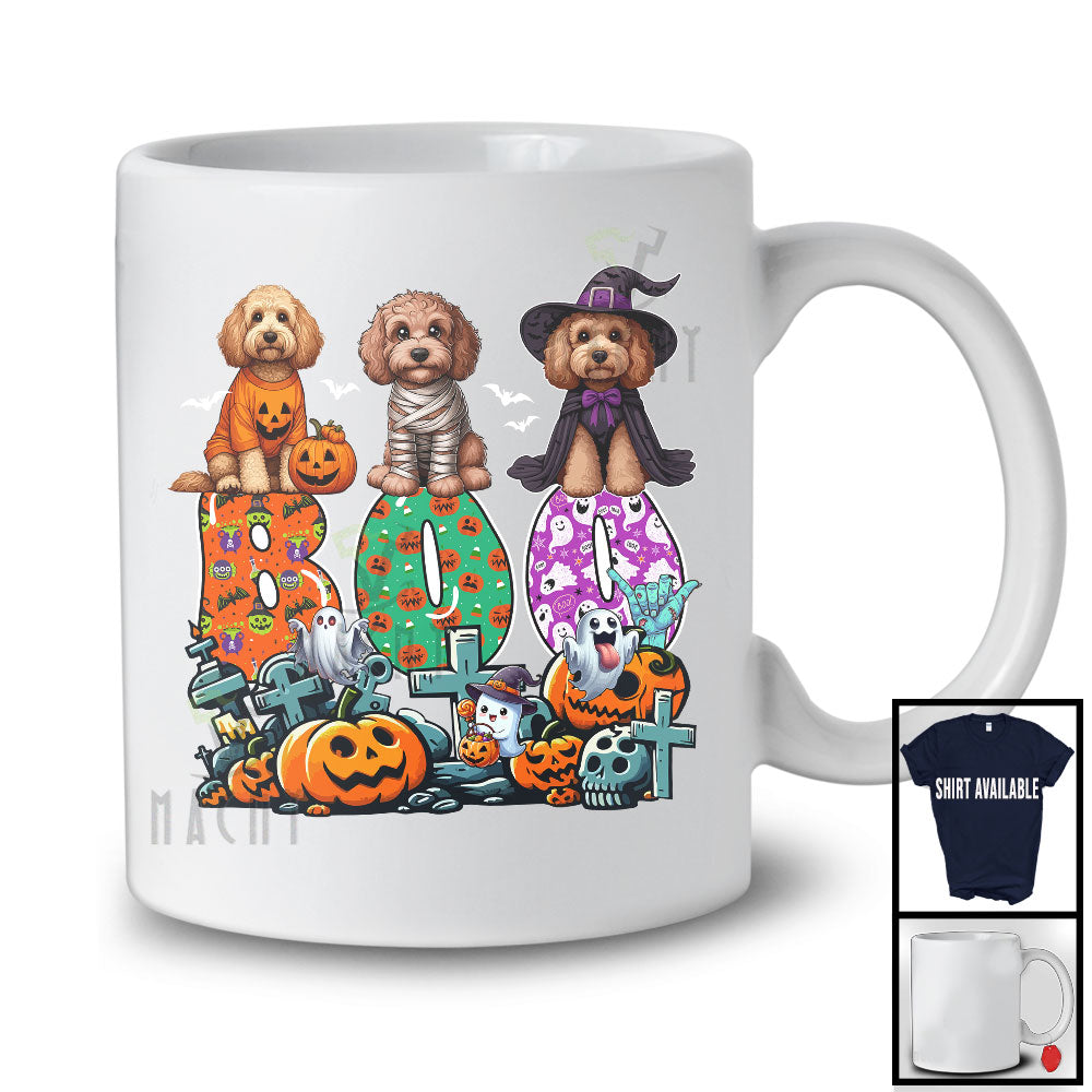 Boo; Spooky Halloween Three Pumpkin Mummy Witch Cockapoos Owner; Family Group T-Shirt. This cotton t-shirt is a durable staple product with a classic fit. One of the most popular items, it has a relaxed style made for everyday and casual wear.