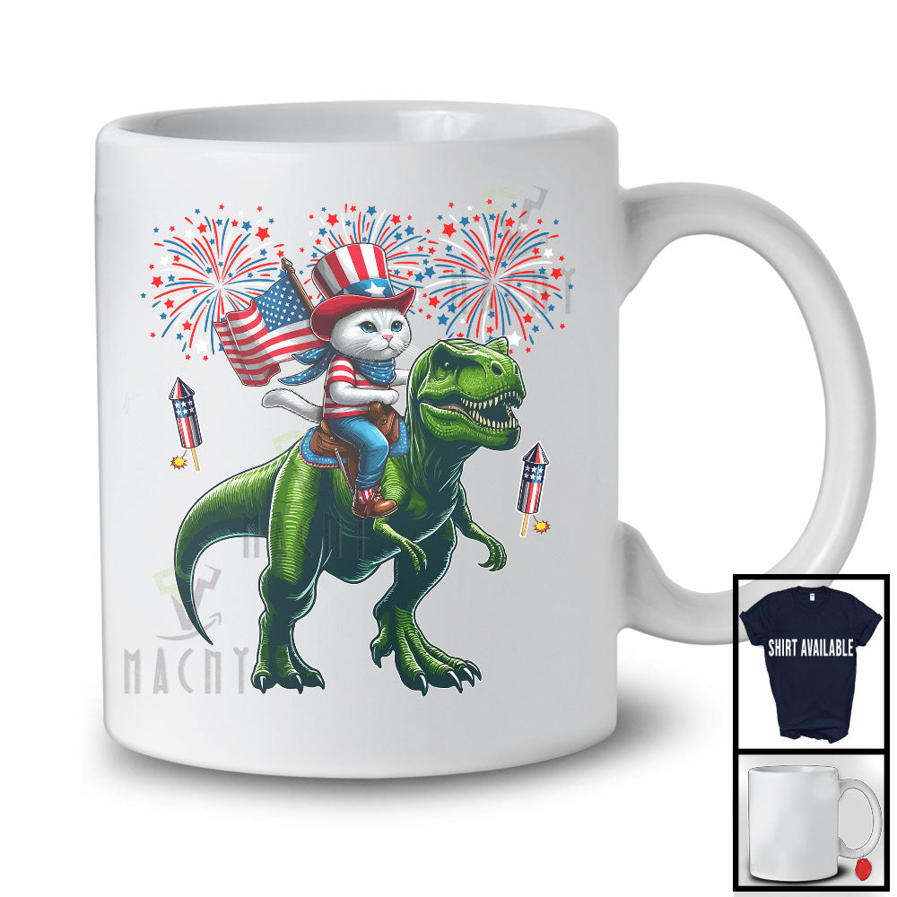 new MacnyStore - Cat Riding T-Rex, Humorous 4th Of July American Flag Pride Cat T-Rex, Patriotic Group T-Shirt – Macnystore