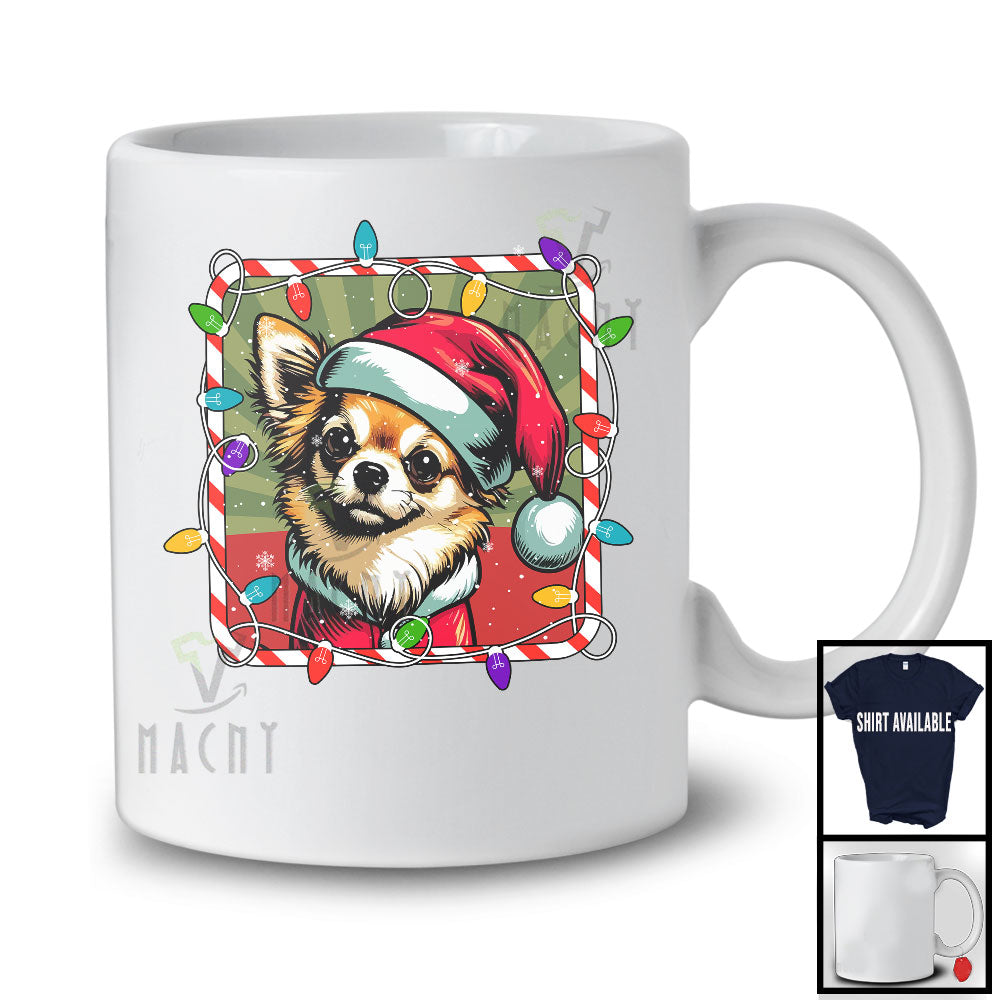 Christmas Lights Santa Chihuahua; Awesome X-mas Pajamas Santa; Snowing Family Group T-Shirt. This cotton t-shirt is a durable staple product with a classic fit. One of the most popular items, it has a relaxed style made for everyday and casual wear.