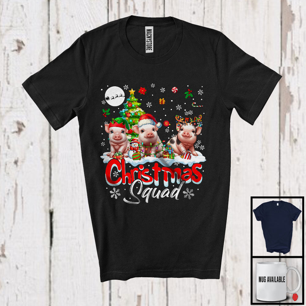 Christmas Squad; Adorable Pig X-mas Tree Snowing; Pig Lover Farm Farmer Family Group T-Shirt. This cotton t-shirt is a durable staple product with a classic fit. One of the most popular items, it has a relaxed style made for everyday and casual wear.