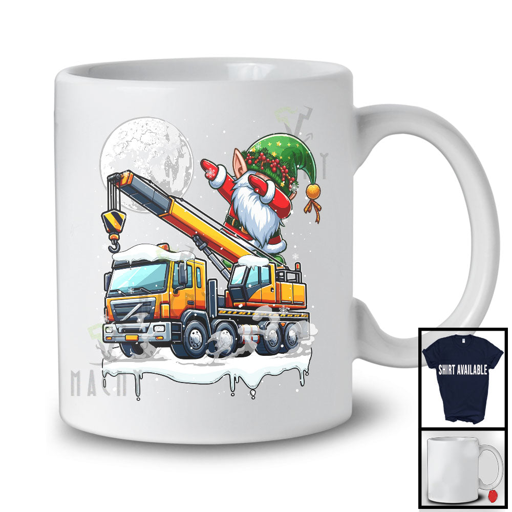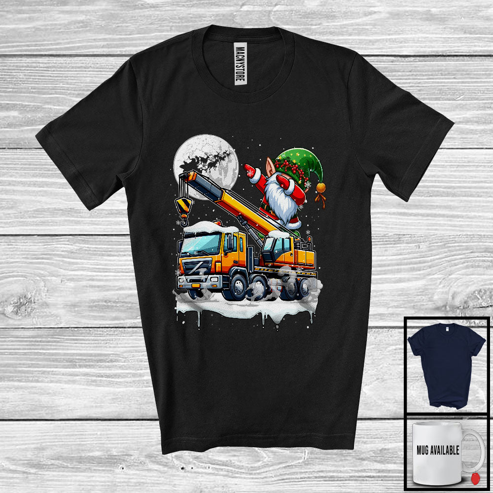 Dabbing Gnome On Crane Truck; Joyful Christmas Moon Snowing Gnome; Crane Truck Driver Lover T-Shirt