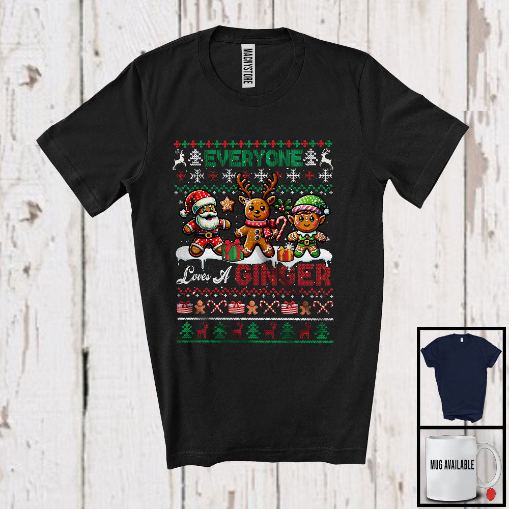 Everyone Loves A Ginger; Lovely Christmas Three Gingerbreads Cookies; Sweater Baking Baker T-Shirt. This cotton t-shirt is a durable staple product with a classic fit. One of the most popular items, it has a relaxed style made for everyday and casual wear.