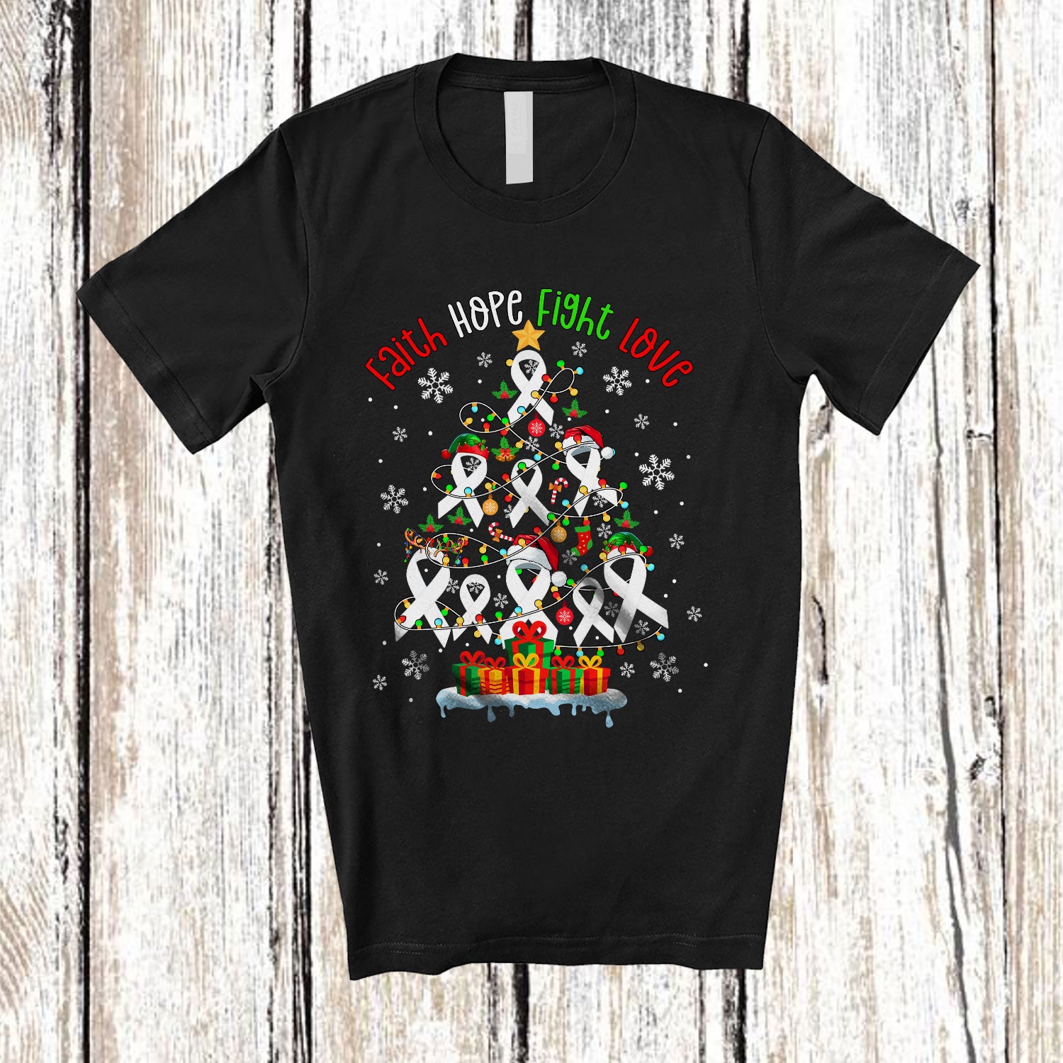 Faith Hope Fight Love; Fantastic Christmas Lights Tree Lung Cancer Ribbon; Family Group T-Shirt