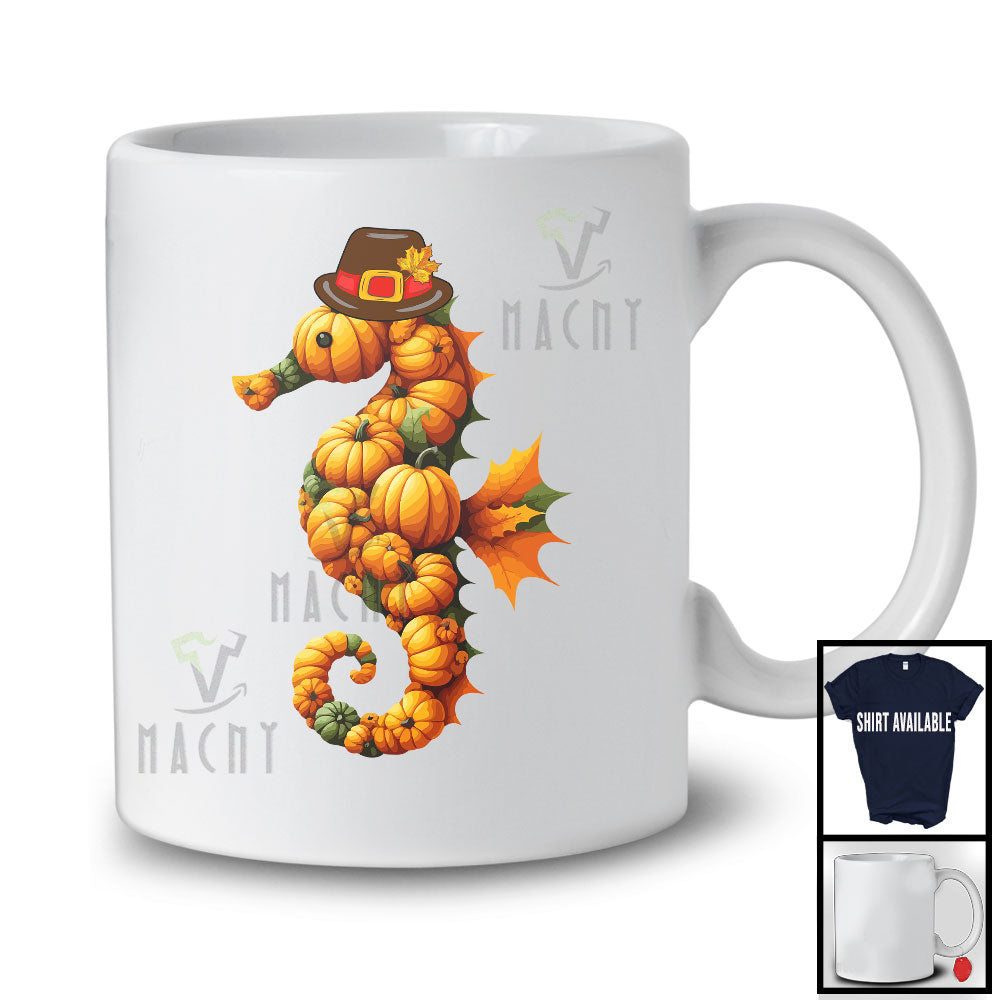 Fall Autumn Leaves Pumpkin Seahorse Shape; Amazing Thanksgiving Sea Animal; Family Group T-Shirt