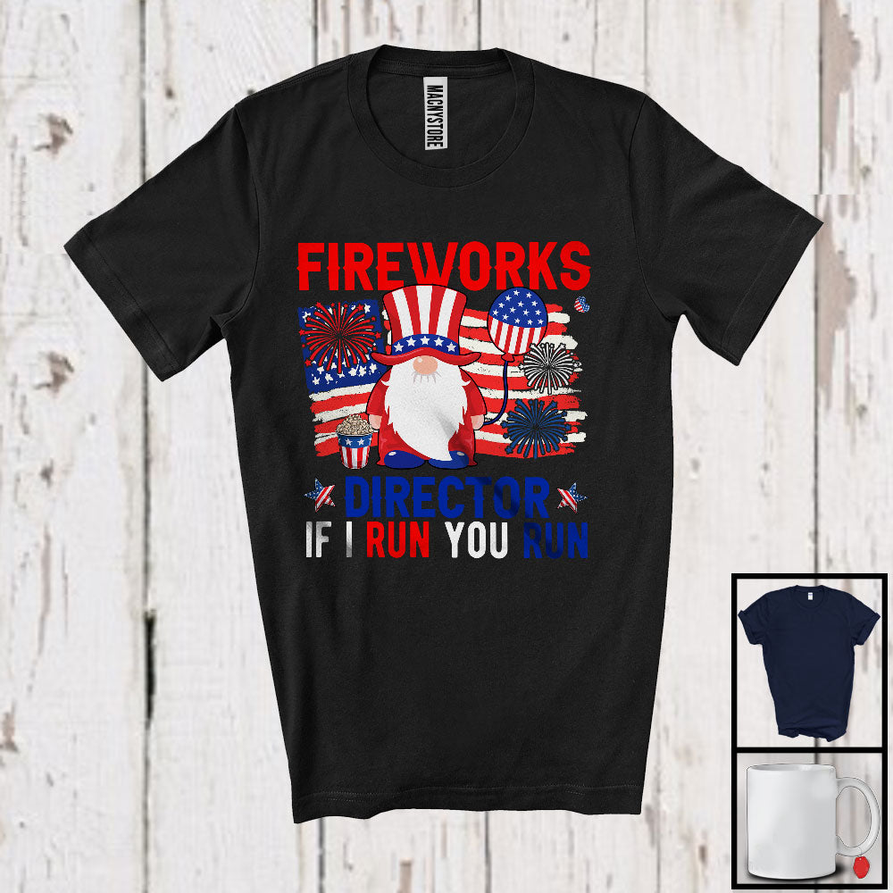 Fireworks Director If I Run You Run, Lovely 4th Of July Gnome USA Flag, Patriotic Family T-Shirt