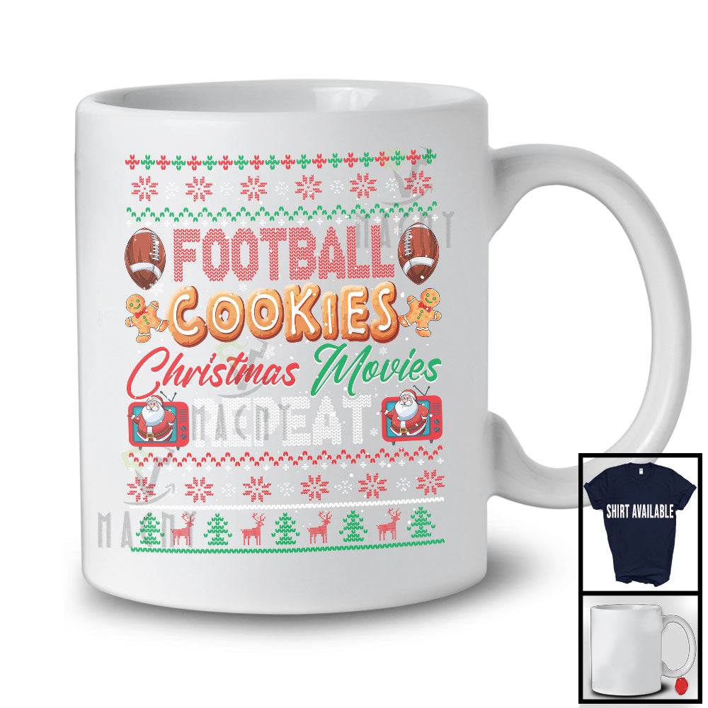 Football Cookies Christmas Movies Repeat; Amazing X-mas Sweater Santa Football Player T-Shirt