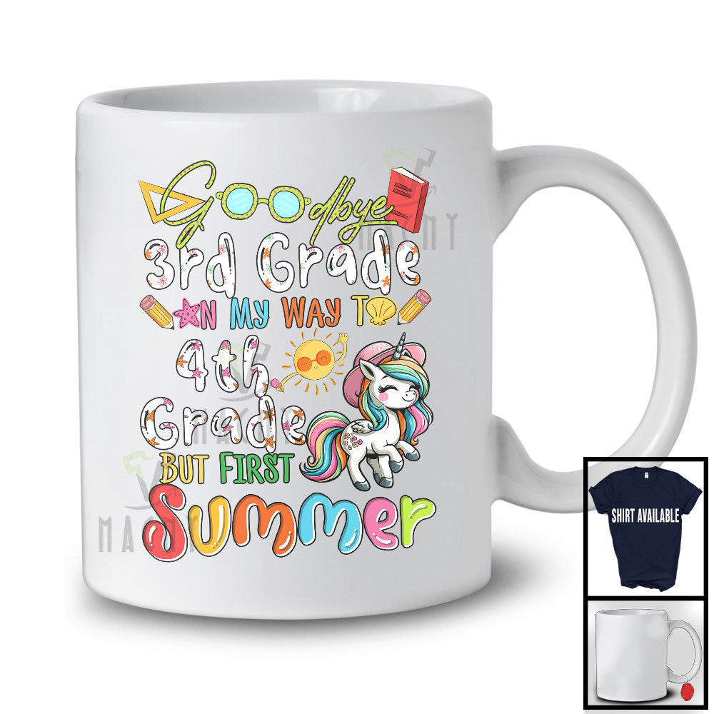 • Goodbye 3rd Grade Way To 4th Grade, Adorable First Summer Vacation Unicorn, Students Teacher T-Shirt. This cotton t-shirt is a durable staple product with a classic fit. One of the most popular items, it has a relaxed style made for everyday and casual wear.