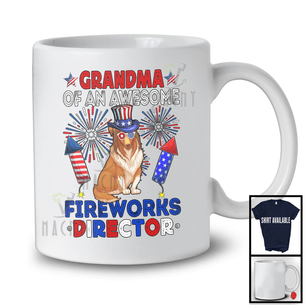• Grandma Of An Awesome Fireworks Director, Lovely 4th Of July Sheltie, Fireworks Patriotic T-Shirt. This cotton t-shirt is a durable staple product with a classic fit. One of the most popular items, it has a relaxed style made for everyday and casual wear.