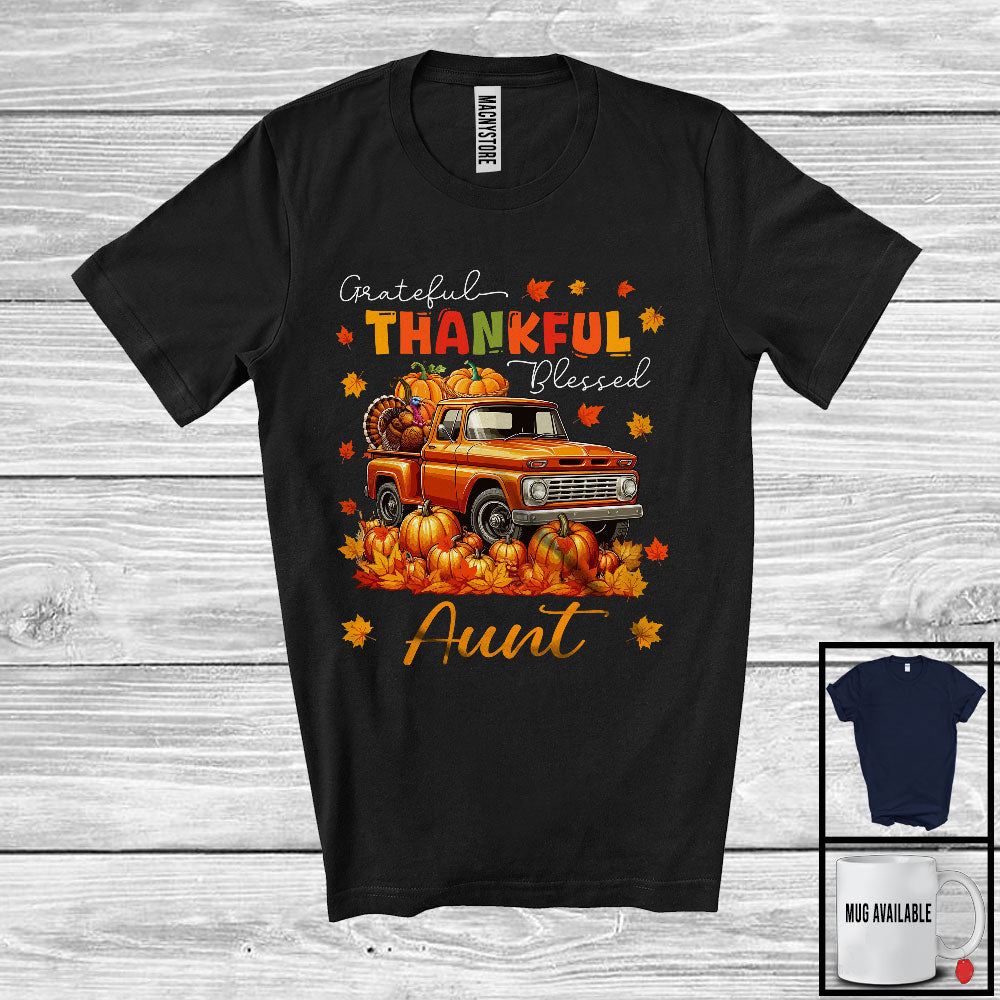 Grateful Thankful Blessed Aunt; Wonderful Thanksgiving Turkey Pumpkin On Pickup Truck; Family T-Shirt