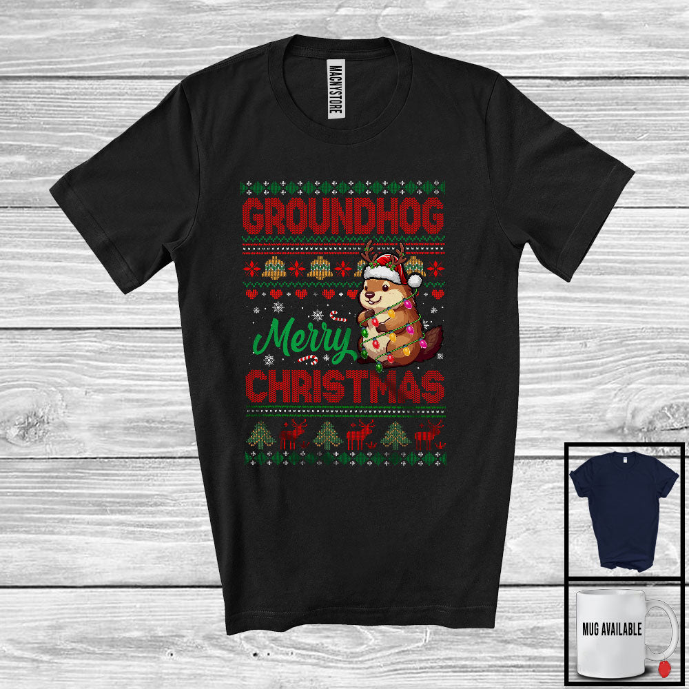 Groundhog Merry Christmas; Lovely X-mas Lights Sweater Santa Groundhog Lover; Snowing Family T-Shirt
