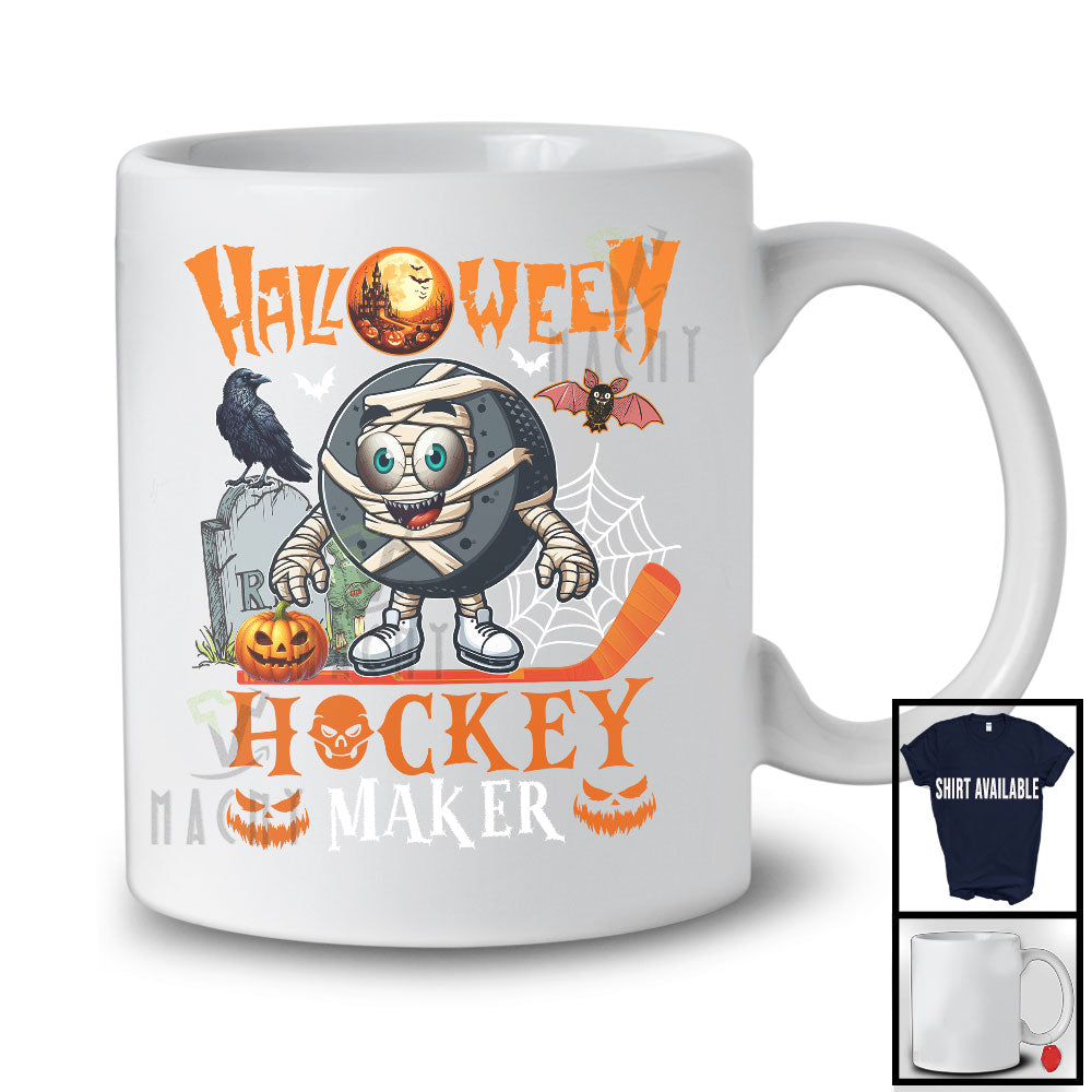 Halloween Hockey Maker, Humorous Halloween Costume Mummy Hockey Player, Sport Team T-Shirt