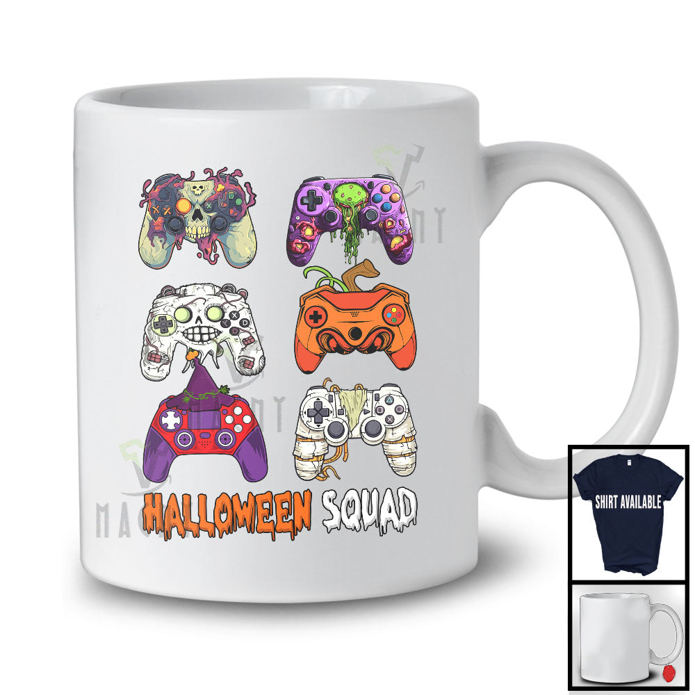 • Halloween Squad, Horror Zombie Pumpkin Game Controllers Collection, Gaming Gamer Group T-Shirt. This cotton t-shirt is a durable staple product with a classic fit. One of the most popular items, it has a relaxed style made for everyday and casual wear.