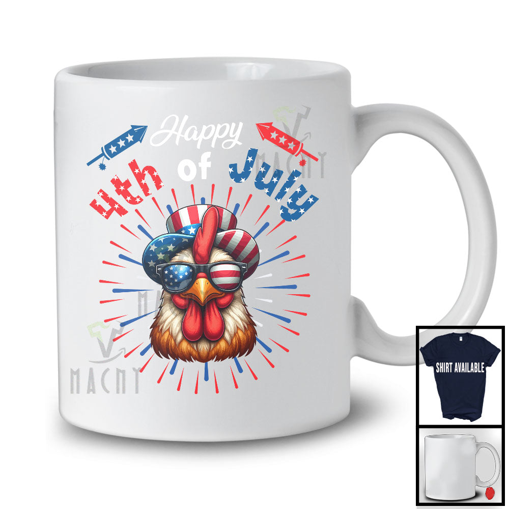 Happy 4th Of July, Humorous American Flag Chicken Face Sunglasses, Farm Farmer Patriotic T-Shirt