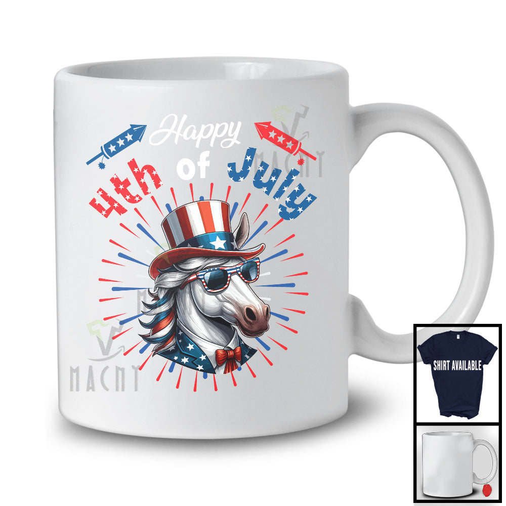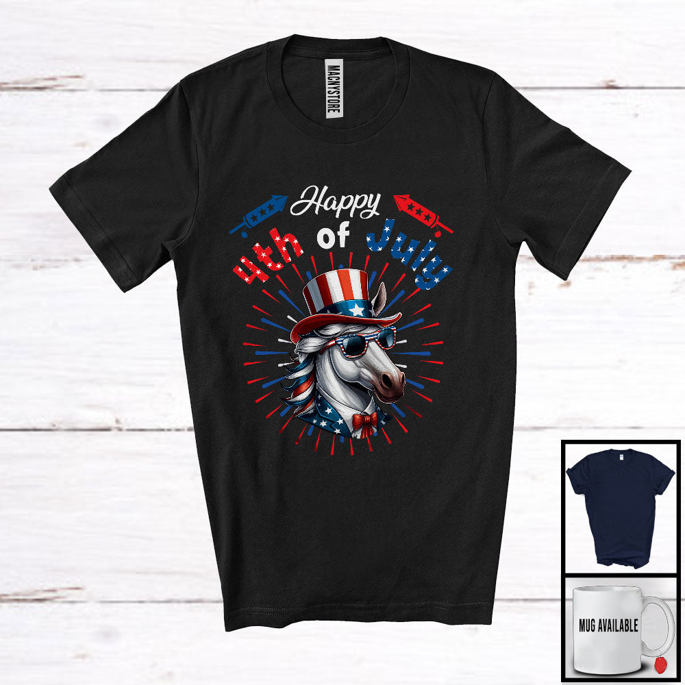 Happy 4th Of July, Humorous American Flag Horse Face Sunglasses, Farm Farmer Patriotic T-Shirt