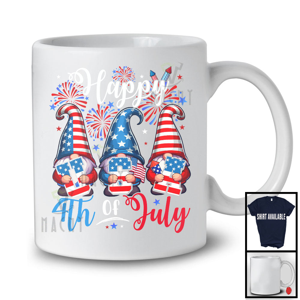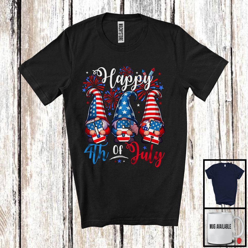 Happy 4th Of July, Lovely Independence Day Three Gnomes Gnomies, USA America Flag Patriotic T-Shirt