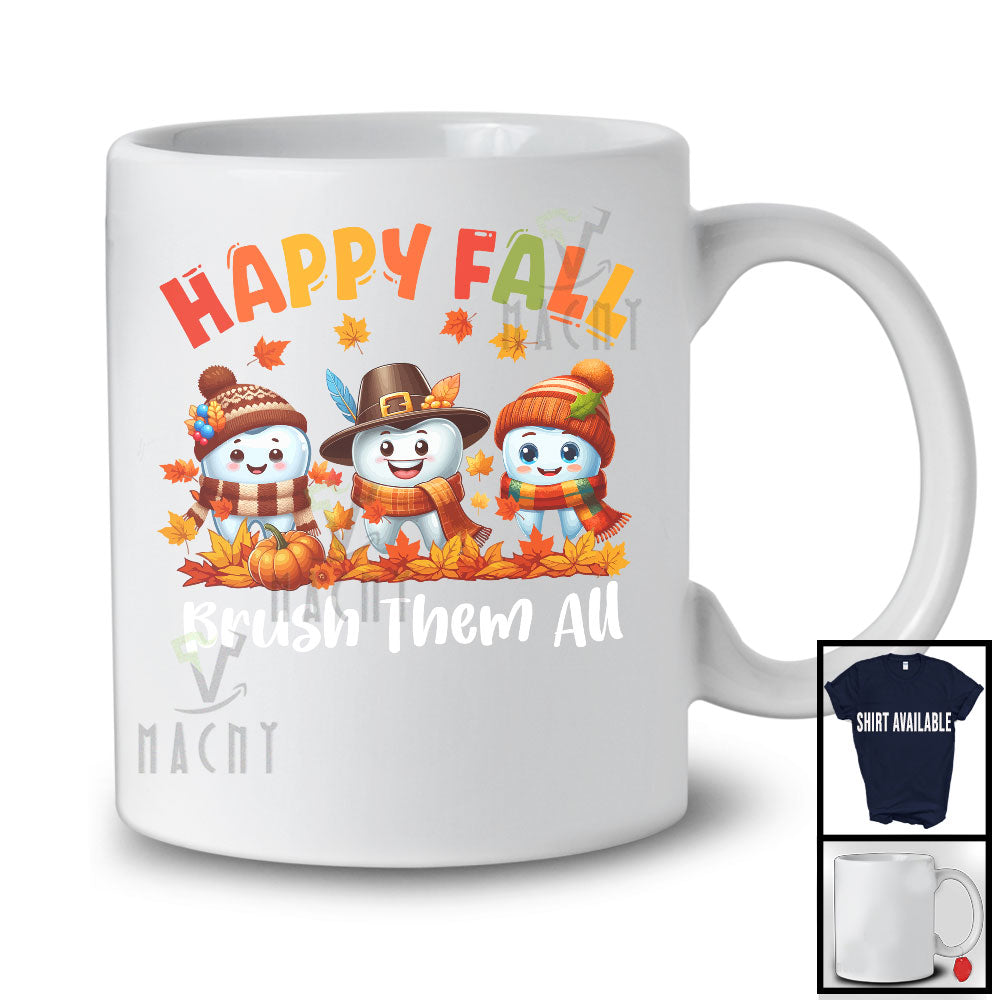 This Happy Fall Brush Them All; Humorous Thanksgiving Three Teeth Autumn; Dental Dentist Group T-Shirt is great idea gift for your family, friends in this birthday, christmas, mother's day, father's day, patrick's day or any holiday.