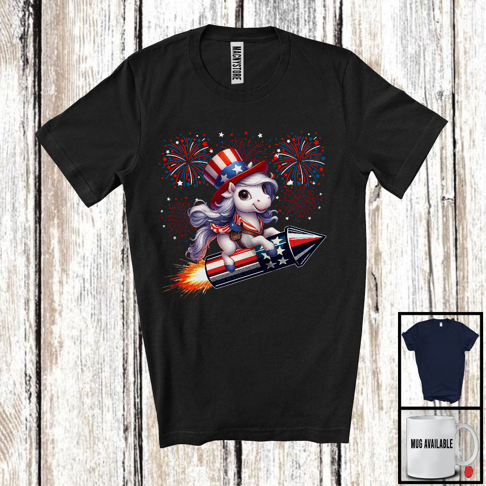 Horse Riding Firecracker, Humorous 4th Of July USA Fireworks, Patriotic Farm Animal Farmer T-Shirt