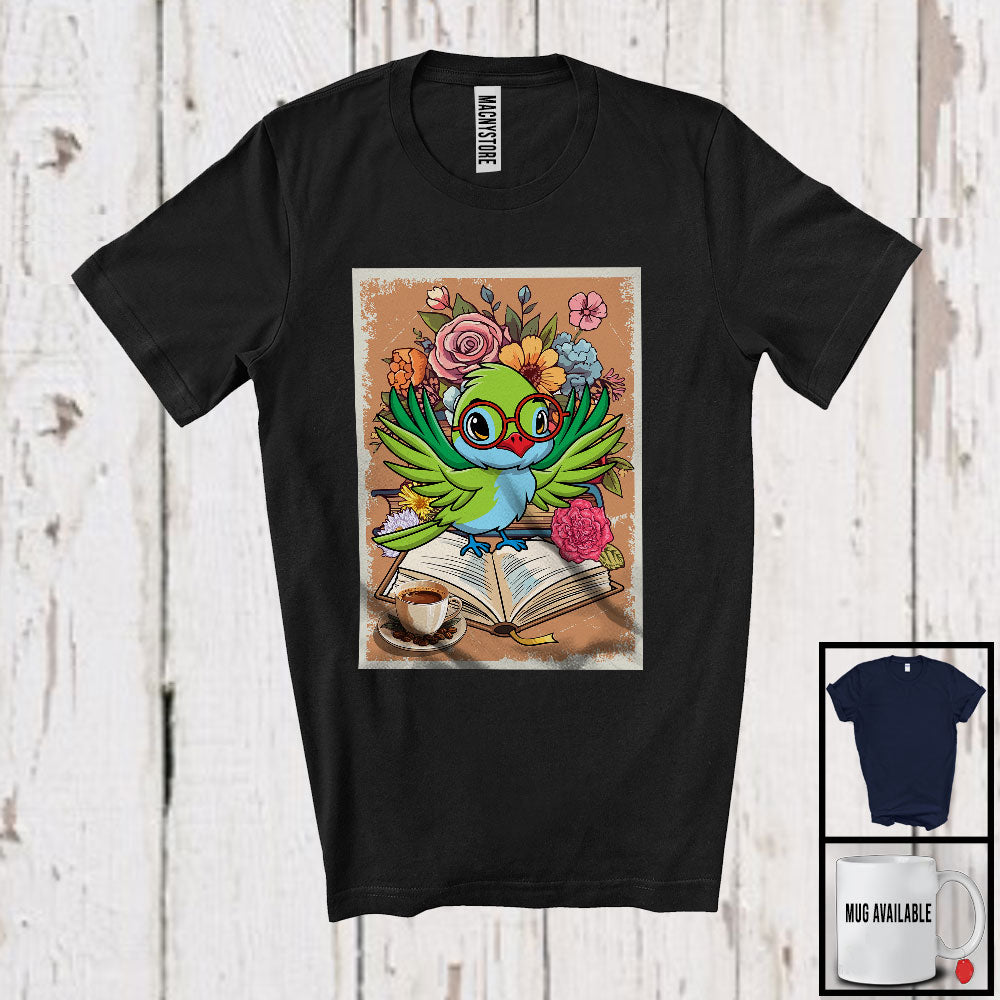 Hummingbird Glasses Reading Book Coffee, Lovely Bird Flowers, Books Nerd Reader Lover T-Shirt