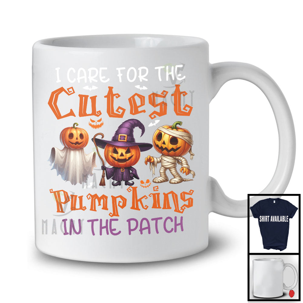 I Care For The Cutest Pumpkins In The Patch, Lovely Halloween Three Pumpkins, Nurse Group T-Shirt