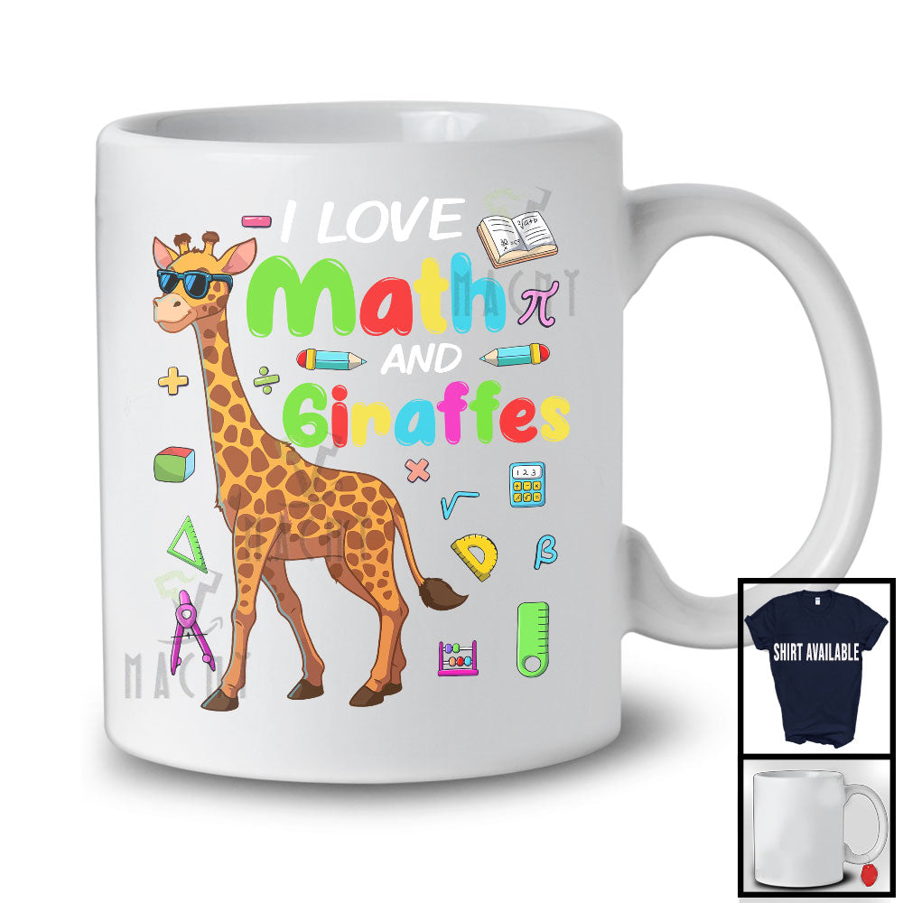 • I Love Math And Giraffes, Colorful Giraffes Animal Lover, Matching Math Teacher Student Team T-Shirt. This cotton t-shirt is a durable staple product with a classic fit. One of the most popular items, it has a relaxed style made for everyday and casual wear.