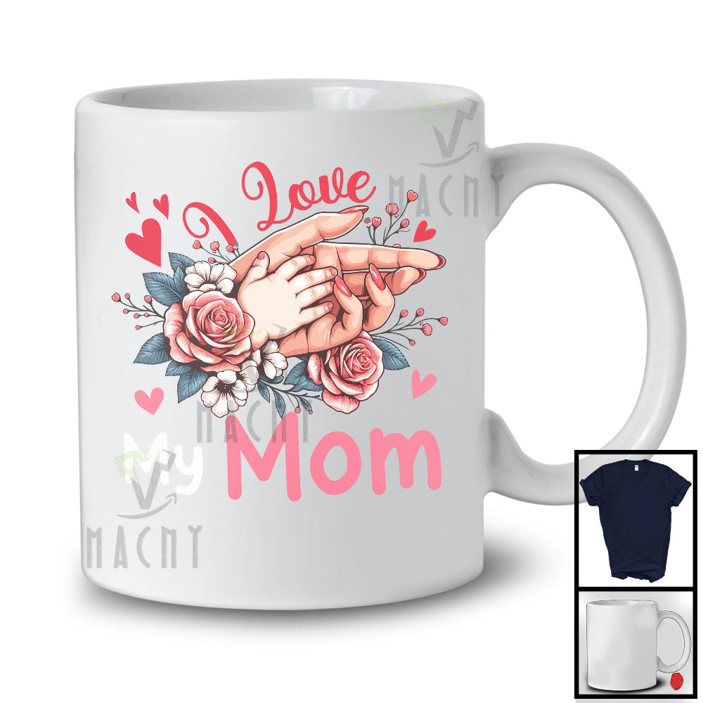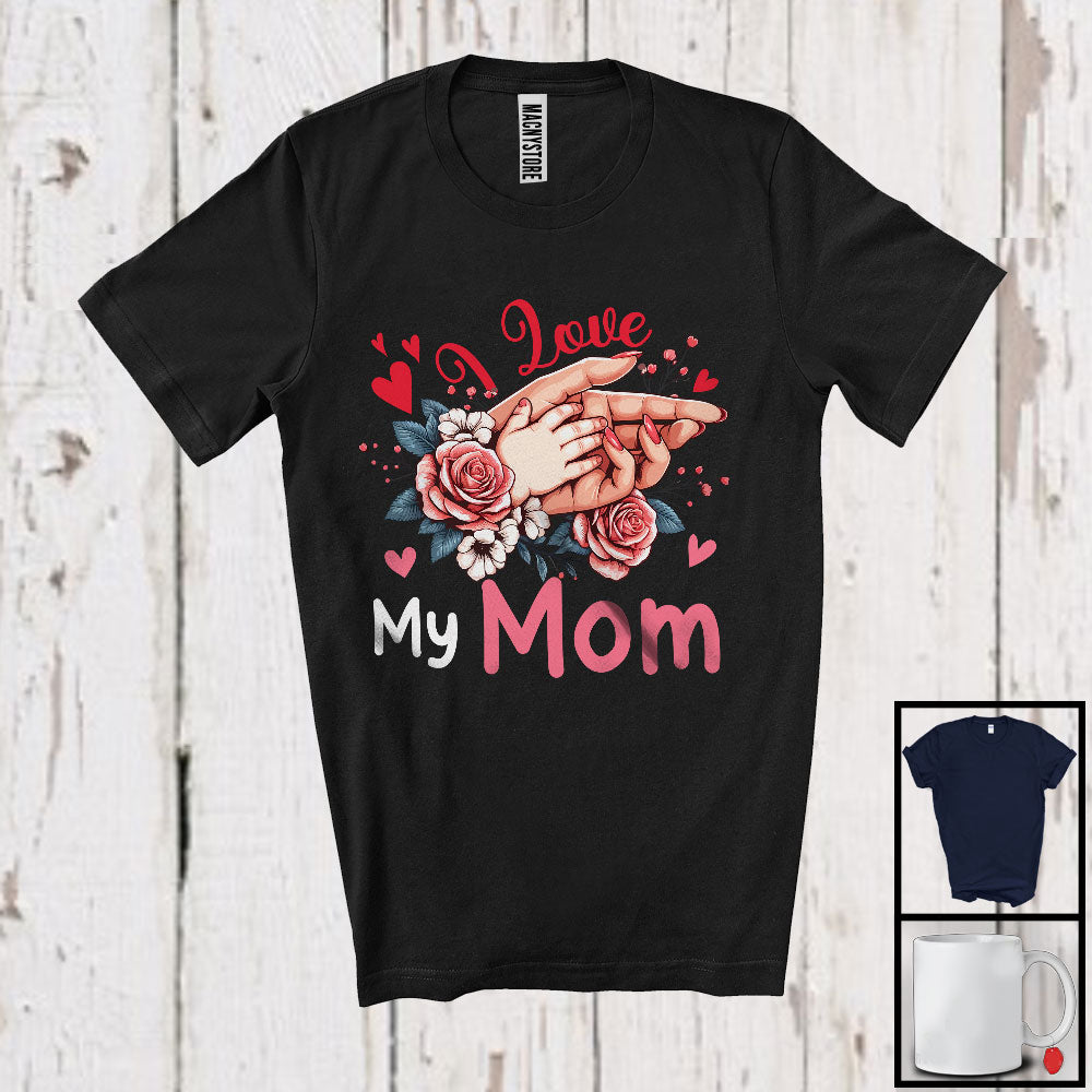 I Love My Mom, Awesome Mother's Day Hands Flowers Lover, Matching Proud Family Group T-Shirt