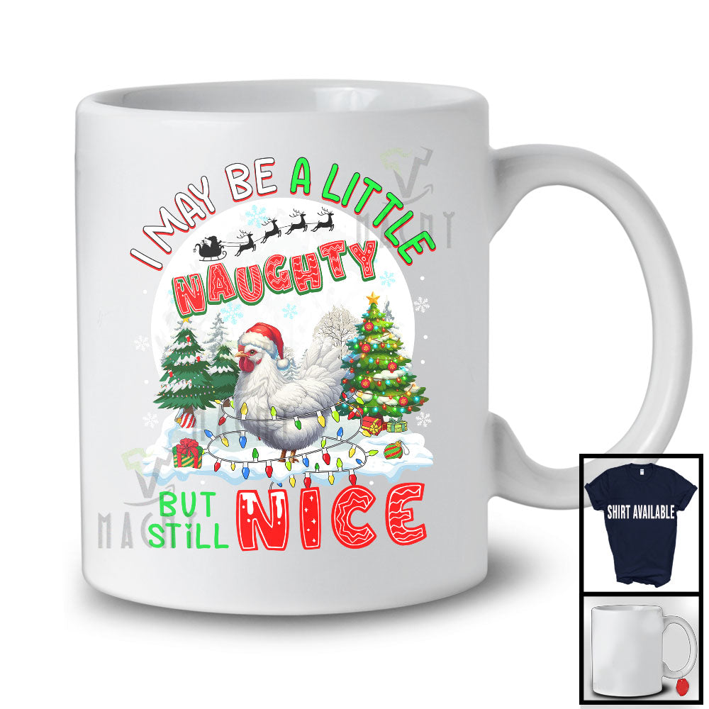 I May Be A Little Naughty But Still Nice; Humorous Christmas Chicken Santa; X-mas Moon T-Shirt