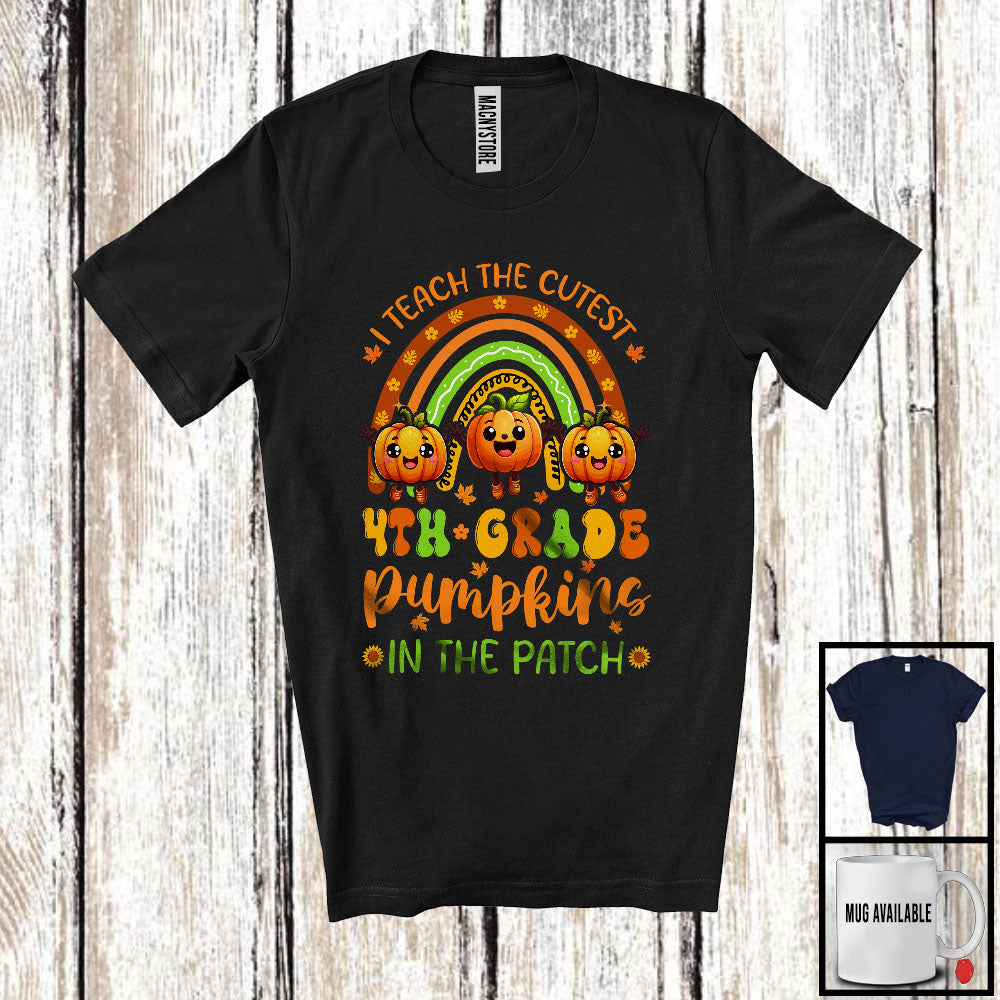 • I Teach The Cutest 4th Grade Pumpkins; Lovely Thanksgiving Fall Rainbow Three Pumpkin; Teacher T-Shirt. This cotton t-shirt is a durable staple product with a classic fit. One of the most popular items, it has a relaxed style made for everyday and casual wear.