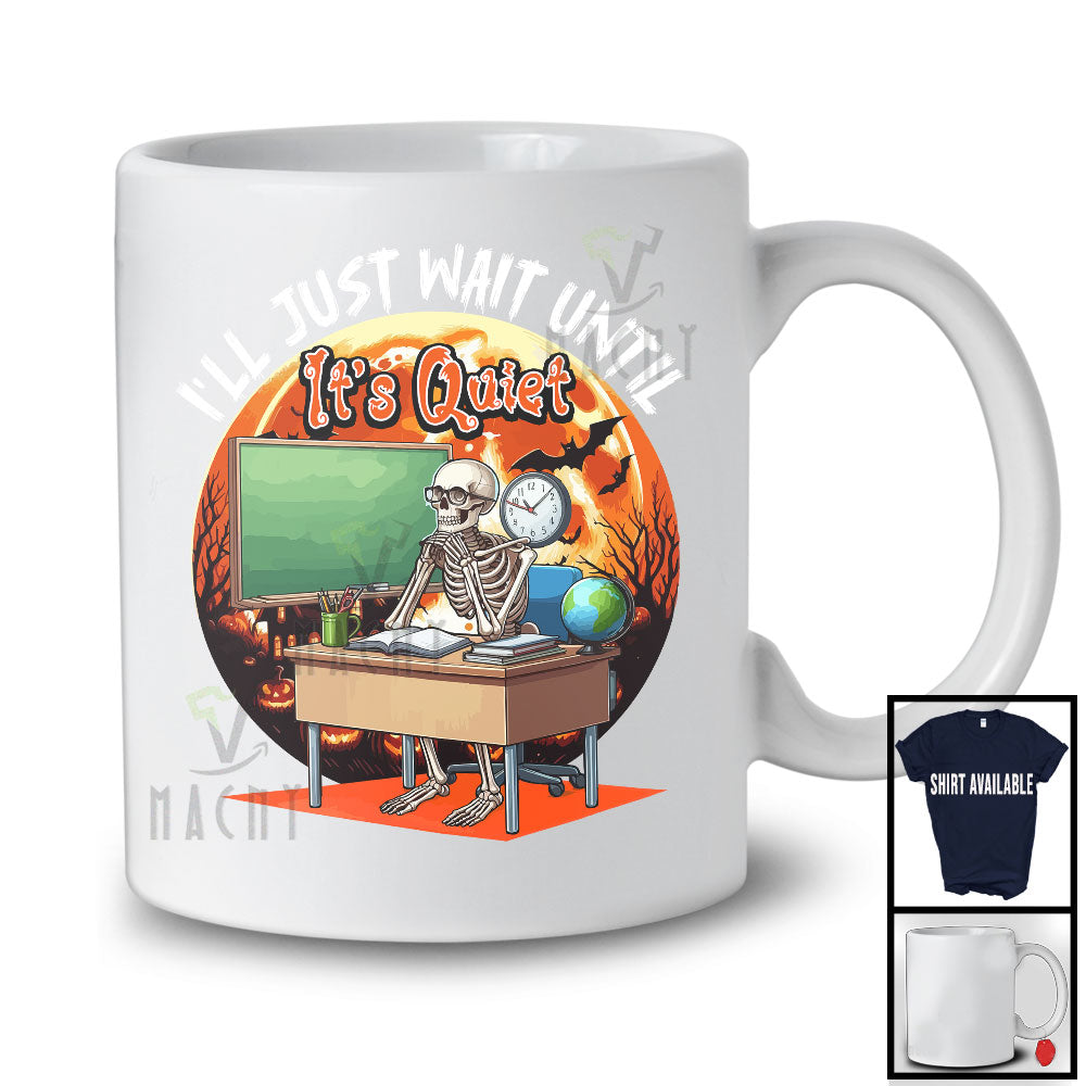 I'll Wait Until It's Quiet; Sarcastic Halloween Skeleton Scary Moon; Teaching Teacher Group T-Shirt. This cotton t-shirt is a durable staple product with a classic fit. One of the most popular items, it has a relaxed style made for everyday and casual wear.