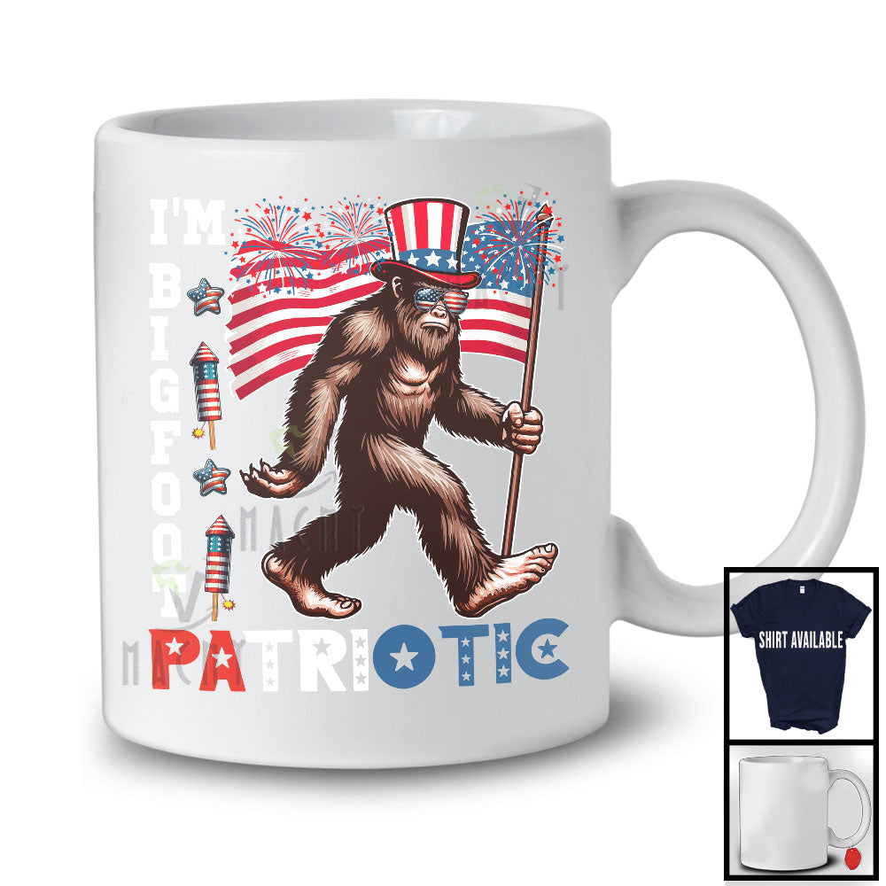 I'm Bigfoot Patriotic, Humorous 4th of July Bigfoot With American Flag, Fireworks Patriotic Group T-Shirt