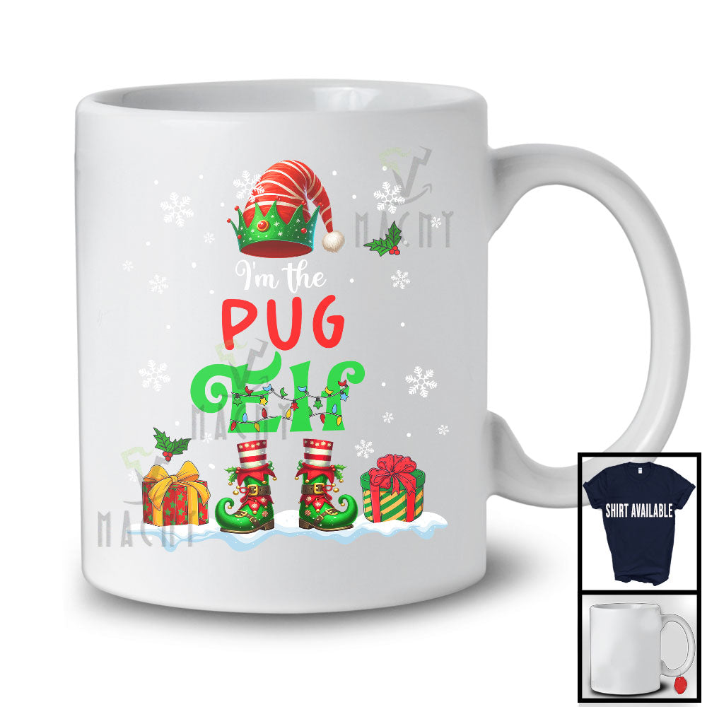 • I'm The Pug Elf; Awesome Christmas ELF Costume Snowing Around; X-mas Family T-Shirt. This cotton t-shirt is a durable staple product with a classic fit. One of the most popular items, it has a relaxed style made for everyday and casual wear.