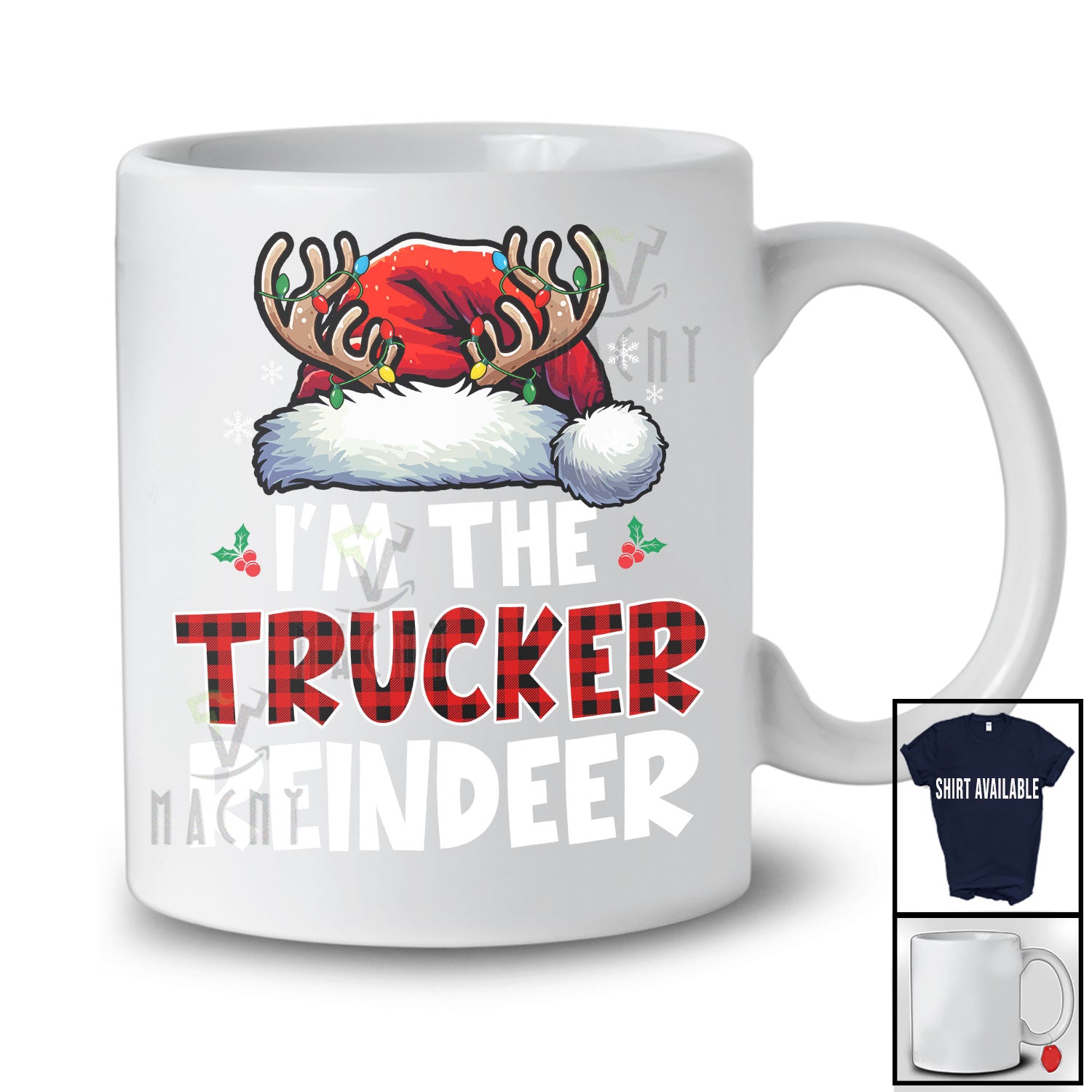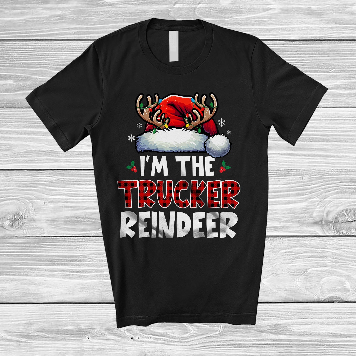I'm The Trucker Reindeer; Joyful Christmas Red Plaid Santa Reindeer; Trucker X-mas Family T-Shirt