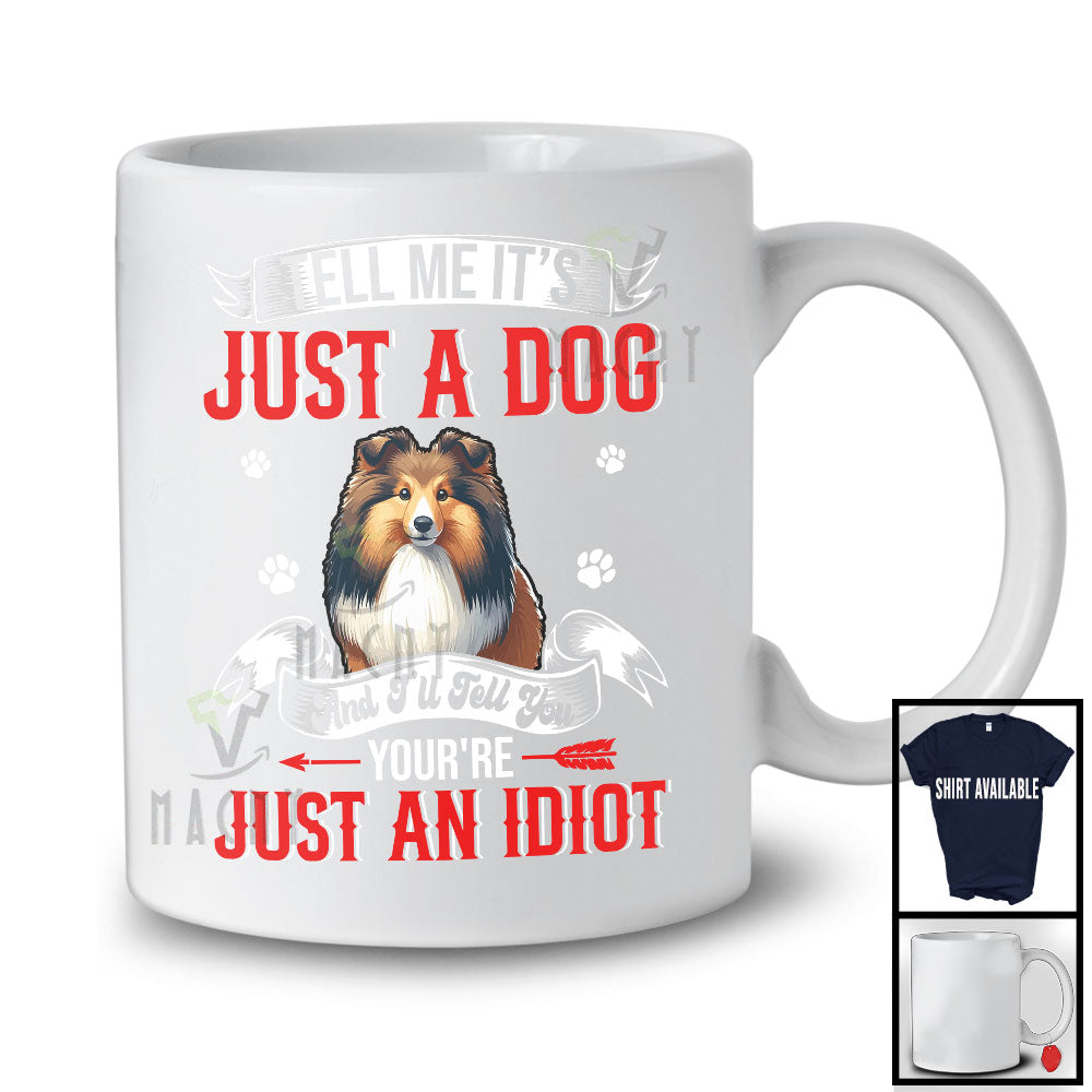 Just A Dog You're Just An Idiot; Sarcastic Paws Shetland Sheepdog Owner; Family Group T-Shirt
