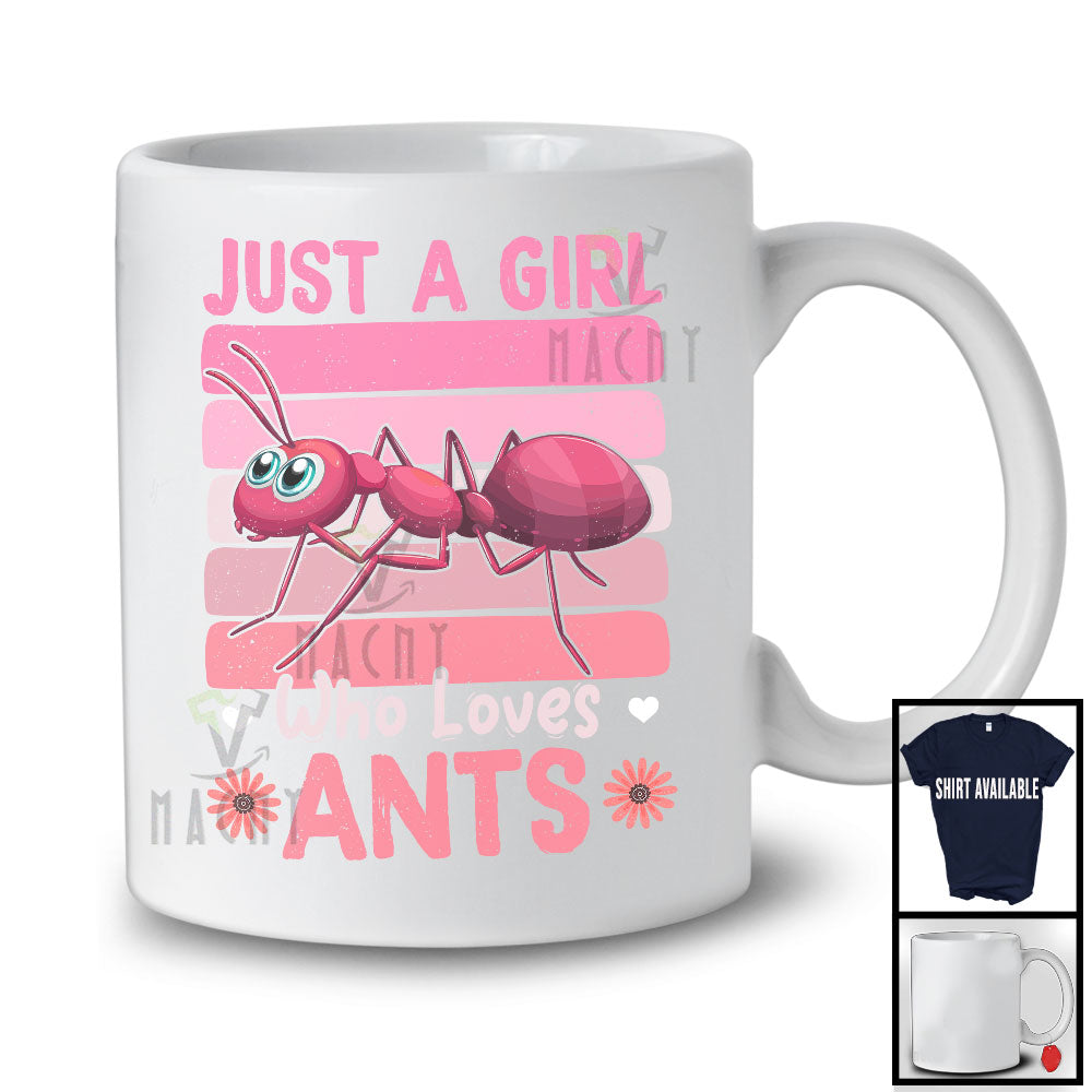 This Just A Girl Who Loves Ants, Humorous Summer Pink Retro Flowers Ants, Insects Lover T-Shirt is great idea gift for your family, friends in this birthday, christmas, mother's day, father's day, patrick's day or any holiday.