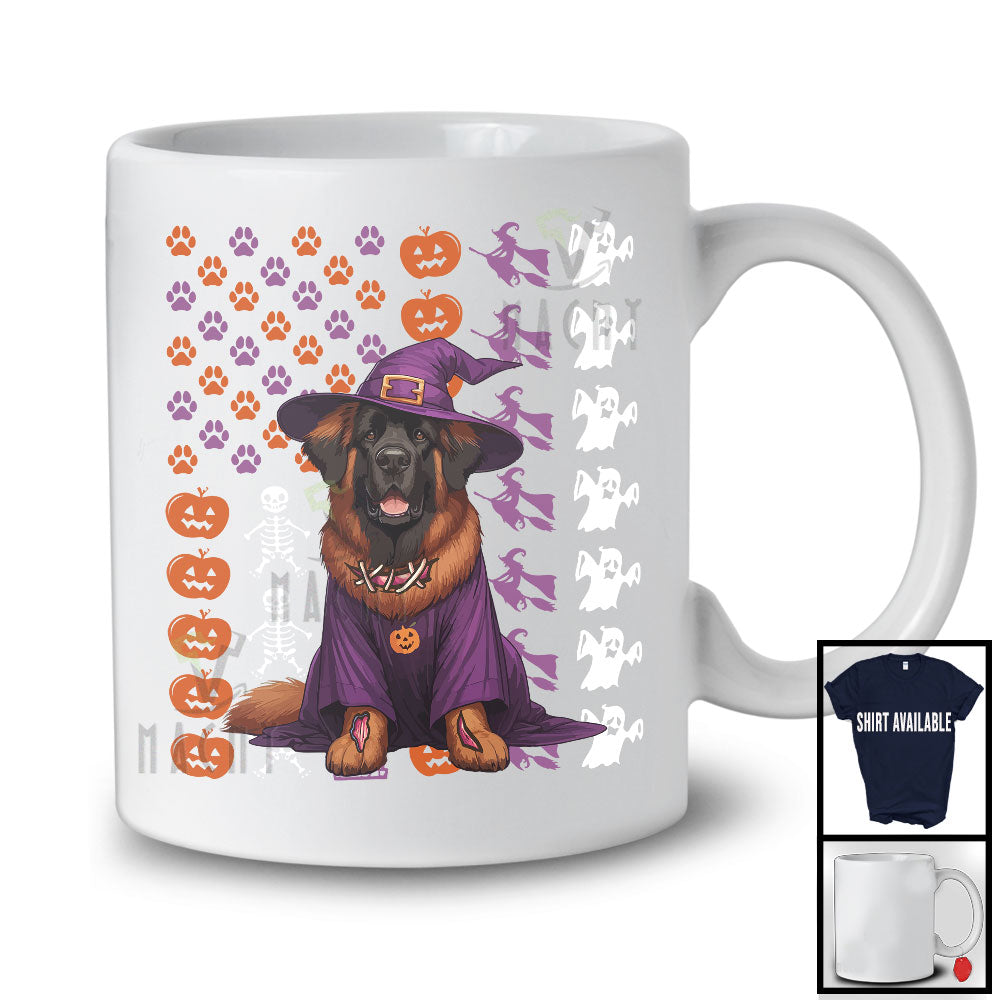 Leonberger Witch On American Flag, Adorable Halloween Pumpkin Paws, Patriotic Group T-Shirt