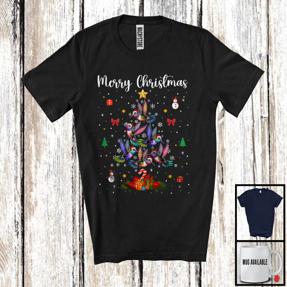 Merry Christmas; Adorable Santa Hummingbird Christmas Tree Lights; Animal Lover X-mas Group T-Shirt