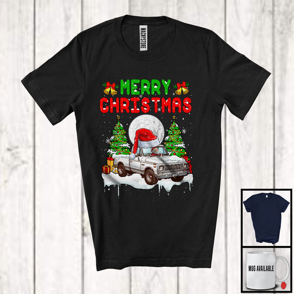 new MacnyStore - Merry Christmas; Amazing X mas Moon Tree Santa Pickup Driver Lover; Family Group T-Shirt – Macnystore