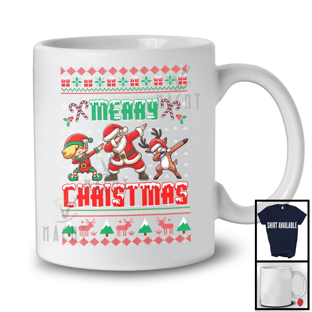 Merry Christmas; Cheerful X-mas Santa Elf Reindeer Dabbing; X-mas Sweater Family Group T-Shirt