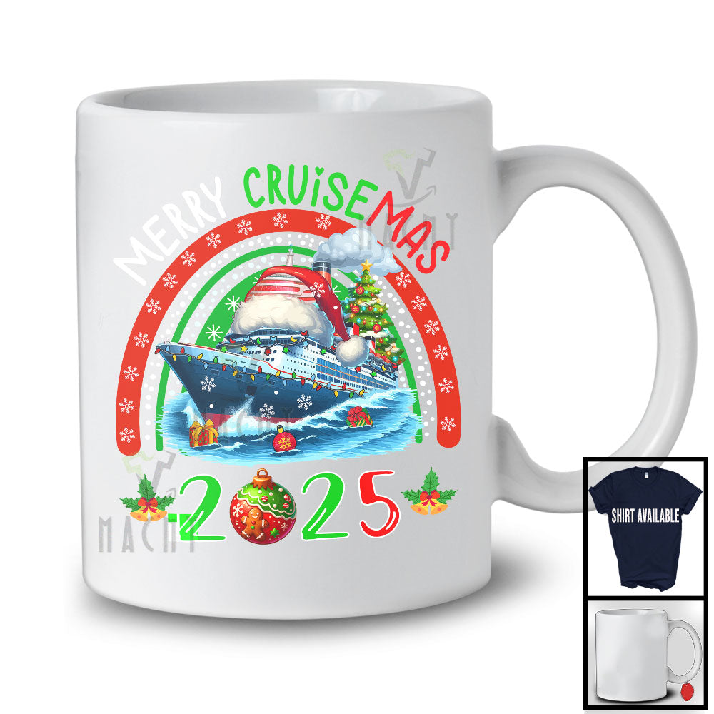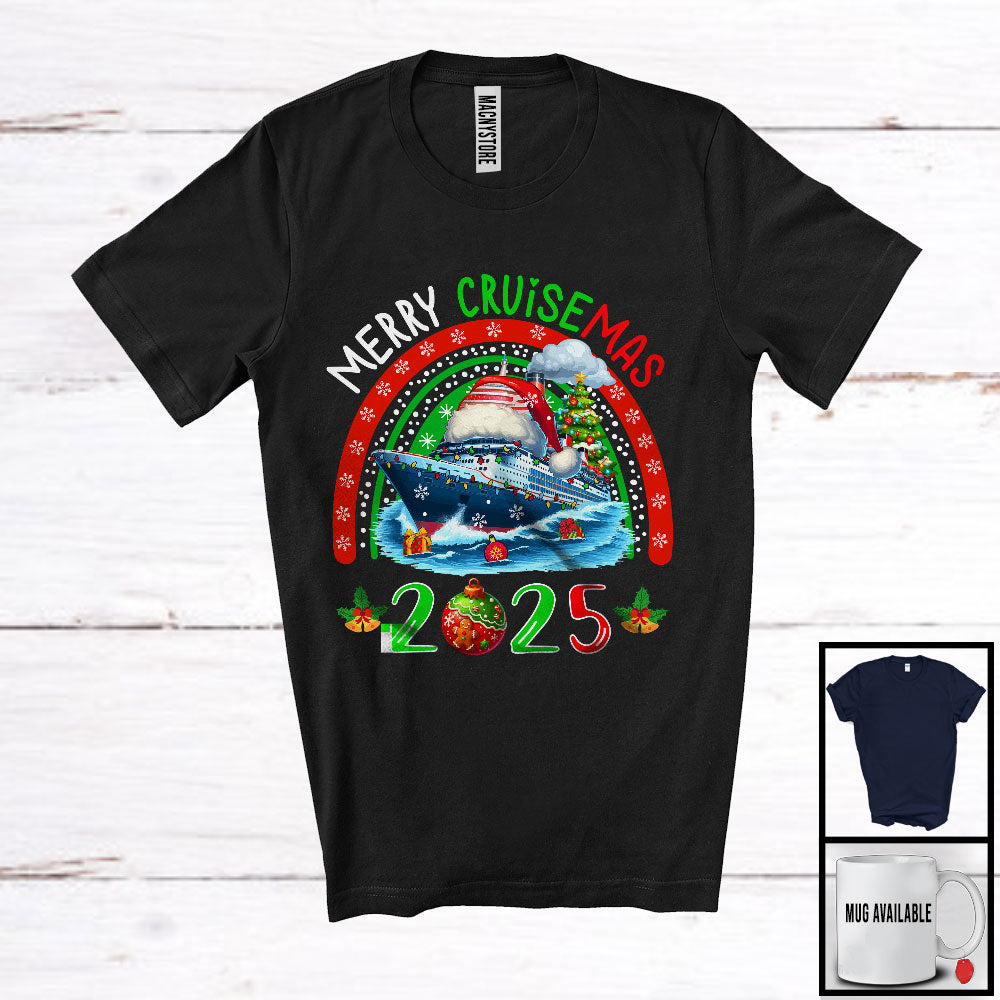 Merry Cruisemas 2025; Adorable Christmas Santa Cruise Ship; Family Group X-mas Rainbow T-Shirt