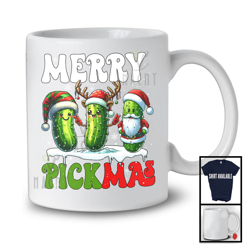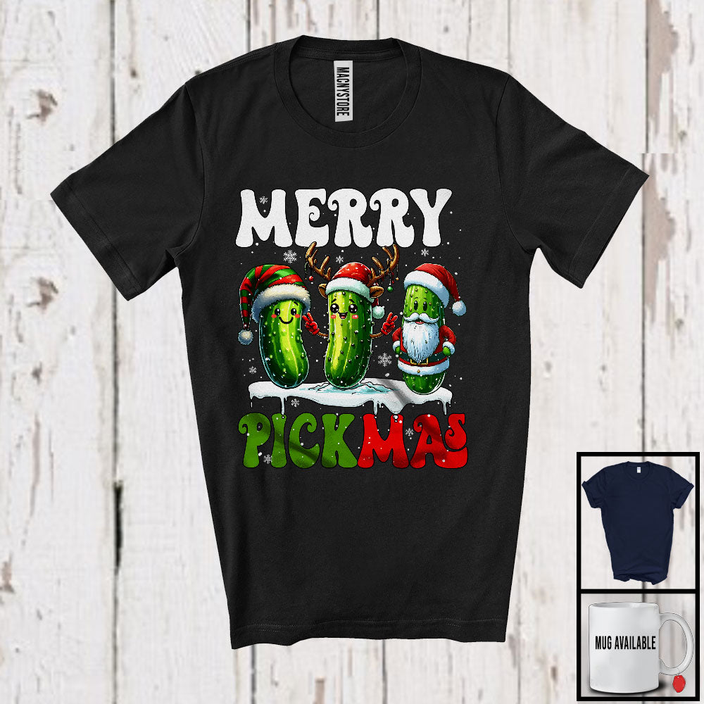new MacnyStore - Merry Pickmas; Adorable Christmas Snow Plaid Santa Reindeer ELF Pickle Fruit; X-mas Snowing T-Shirt – Macnystore
