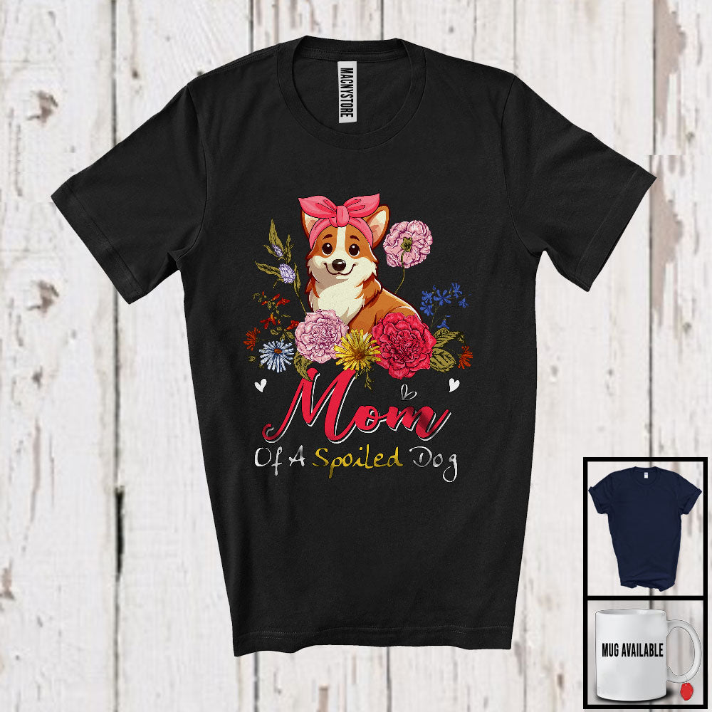 • Mom Of A Spoiled Dog, Floral Mother's Day Flowers Matching Corgi Lover, Family Group T-Shirt. This cotton t-shirt is a durable staple product with a classic fit. One of the most popular items, it has a relaxed style made for everyday and casual wear.