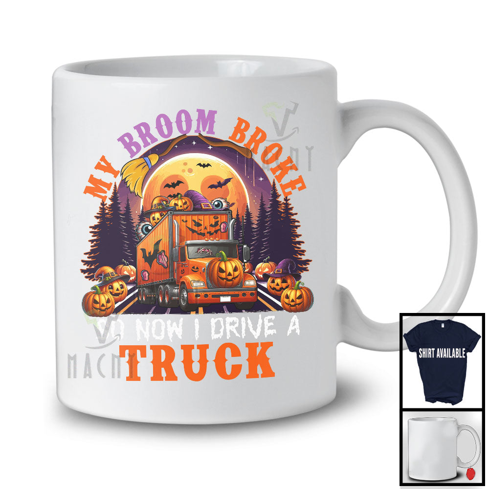 My Broom Broke So Now I Drive A Truck, Awesome Halloween Witch Driver, Moon Pumpkins T-Shirt